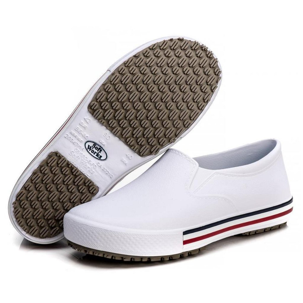 BB80 - CA 37.212 O Cabedal do Tênis Unissex Soft Works é confeccionado em EVA, um material super leve, que permite extremo conforto e alta absorção de impacto. Contem Palmilha em EVA, com tecido na parte superior. Este calçado possui o selo de conforto emitido pelo IBTeC (Instituto Brasileiro de Tecnologia do Couro, Calçados e Artefatos), um órgão brasileiro que realiza testes de conforto nos calçados, conferindo-lhes um certificado. O Solado é composto por uma borracha especial, com Tecnologia Super Grip resistente ao escorregamento em piso cerâmico com solução de detergente e em piso de aço com solução de glicerol, resistente ao óleo combustível e à absorção de energia na região do salto. Contém substância Antimicrobiana junto à formulação composto EVA confecção do Cabedal, que atenua o odor nos pés. Ideal para quem está procurado por conforto e praticidade na rotina profissional. Pode ser usado com o sem meia, super fácil de calçar. Fechado na parte superior e traseira, o Tamanco com palmilha em PU Soft Works atende plenamente as exigências da Norma NR-32 da Segurança e Saúde dos Trabalhadores em Serviços de Saúde. Este modelo é considerado um EPI. Possui CA (Certificado de Aprovação do Ministério do Trabalho) isso significa que o calçado foi aprovado em testes de resistência, conforto e proteção. LIMPEZA – Facilmente lavável, poderá utilizar água, sabão, detergente. DESINFECÇÃO – É impermeável, sua “composição” permite utilizar o Hipoclorito de Sódio (cloro). SECAGEM – Por ser impermeável, fácil enxuga-lo, simplesmente com pano ou seca-lo à sombra. Não secar ao sol, não deixar exposto ao calor (estufas, fornos, atrás da geladeira) TABELA DE MEDIDAS TAMANHO COMPRIMENTO CM 34 22,5 35 23 36 23,5 37 24 38 25 39 25,5 40 26 41 27,5 42 28 43 28,5 44 29 45 30 46 31 47 32 48 32,5 tenis , tênis , sapatenis , iate , bb80 , soft works , epi , hospitalar , enfermagem , impermeavel antiderrapante , epi , c.a , sapato , cozinha , clinica , hotelaria .