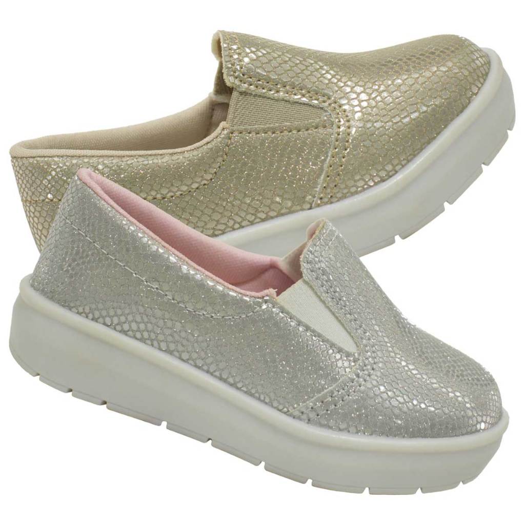 SLIP ON Tamanho da Forma: Normal - Recomendamos que compre o tamanho padrão de uso, para melhor calce e maior conforto. Cores Disponíveis: • Dourado • Prata Especificação Técnica: • Tipo de produto: Tênis slip on Infantil. • Material externo: Sintético. • Material interno: Têxtil. • Sola: TR. • Peso médio do produto: 372 gramas. • Altura da sola: 2,5 cm. • Fechamento: Calce fácil. • Numeração: Será enviada pelo critério de escolha. • Embalagem: Cada par vai na sua caixa individual. Tabela de Medidas: 20 ---------------- 13,5 cm 21 ---------------- 14,0 cm 22 ---------------- 14,5 cm 23 ---------------- 15,0 cm 24 ---------------- 16,5 cm 25 ---------------- 16,8 cm 26 ---------------- 17,3 cm 27 ---------------- 18,0 cm Como Medir: Coloque o pé em cima de uma folha de papel e risque em volta dele com um lápis ou caneta. Meça o comprimento do topo até a base do contorno e adicione 0,5 cm de folga. Limpeza e Conservação: Evite usar substâncias abrasivas como álcool, detergentes ou solventes nos calçados, usar produtos neutros. Nunca os deixe de molho ou lave na máquina. A secagem deve ser feita em temperatura ambiente e na sombra, nunca no sol ou em máquinas. Dicas Pópidi: Com o nosso lindo Slip On sua pequena vai brilhar com muito estilo e conforto. O calce fácil é um dos grandes diferenciais desse calçado, pois traz a praticidade necessária para o dia a dia, já o solado antiderrapante garante a segurança necessária nos momentos de diversão. O acabamento com brilho dá um toque especial, transformando qualquer look em algo mágico e divertido. Para aproveitar ao máximo o tênis Slip On infantil com brilho, combine-o com uma calça jeans e uma camiseta básica para um visual despojado e confortável, ideal para o dia a dia ou passeios no parque. Em ocasiões especiais, como festinhas, use o tênis com uma saia ou vestido colorido para adicionar um toque extra de charme ao look. Sobre a Marca: Conectados com o universo infantil através de produtos que transmitem nossos valores, a Pópidi acompanha o dia a dia da criança com muito respeito, dedicação e atitude, desde o nascimento até a pré-adolescência. Oferecemos proteção, conforto e estilo, buscando sempre inovar a cada lançamento. Cuidando com excelência da relação pré e pós-vendas, afinal a satisfação de nossos clientes é muito importante para nós. Atendimento: Segunda à sexta: 07:00 às 18:00 Sábado: 08:00 às 12:00 Boas compras e volte sempre!!!