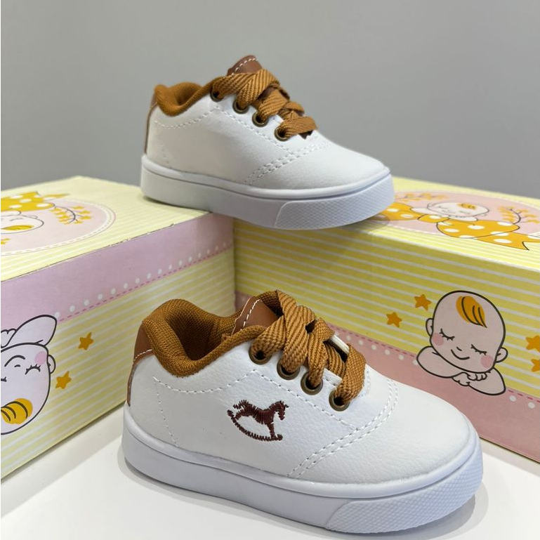 Tênis infantil bebê casual menino calce fácil branco