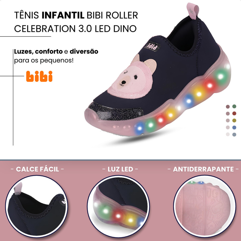 Tênis Infantil Bibi Roller Celebration 3.0 Luz Led Calce Fácil Ursinho