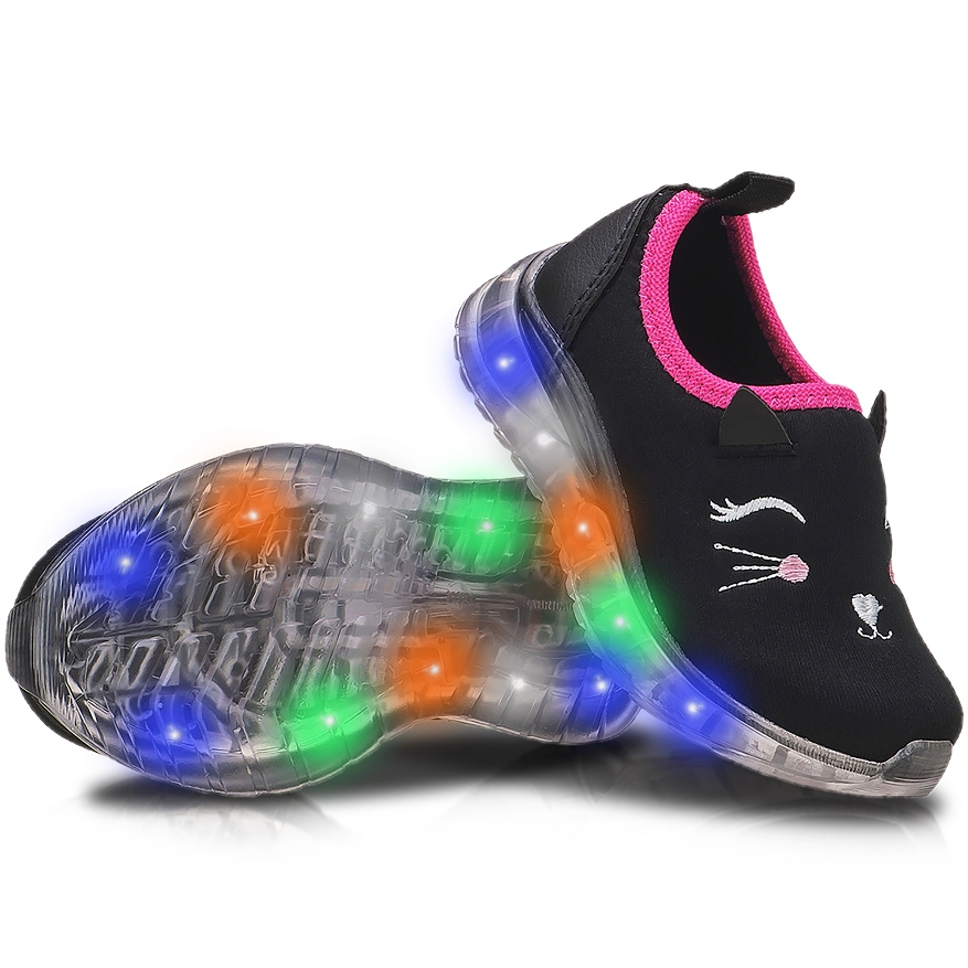 Tênis Infantil Calce Fácil Gatinha Menina Com Led Super Macio e Leve