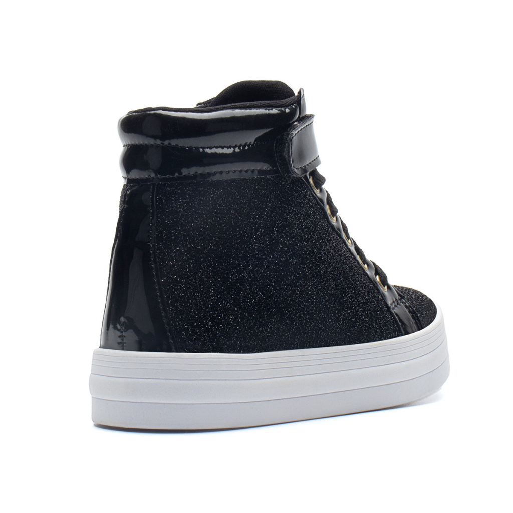 Tênis Infantil Cano Alto Glitter Menina Preto Festa Menina Fashion