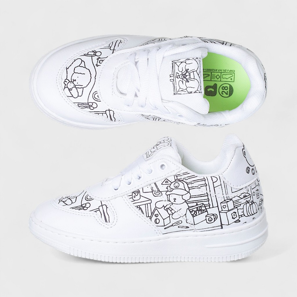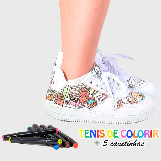 TABELA DE MEDIDAS 28 - 19,5 cm 29 - 19,7 cm 30 - 20,8 cm 31 - 21 cm 32 - 22,1 cm 33 - 22,4 cm 34 - 23 cm Deixe a imaginação dos pequenos correr solta com esse incrível tênis infantil de colorir! Feito especialmente para estimular a criatividade, ele vem com estampas divertidas em preto e branco prontas para ganhar vida com as cores favoritas da criança. Acompanha um kit exclusivo com 5 canetinhas coloridas de ponta dupla — as cores são sortidas, tornando cada par único e cheio de personalidade. Além de confortável e estiloso, o tênis vira uma atividade divertida para os momentos em família. - Numeração disponível: do 28 ao 34 - Kit com 5 canetinhas inclusas (cores sortidas) - Fácil de calçar, resistente e cheio de estilo - Ideal para soltar a criatividade e personalizar do jeitinho que quiser!
