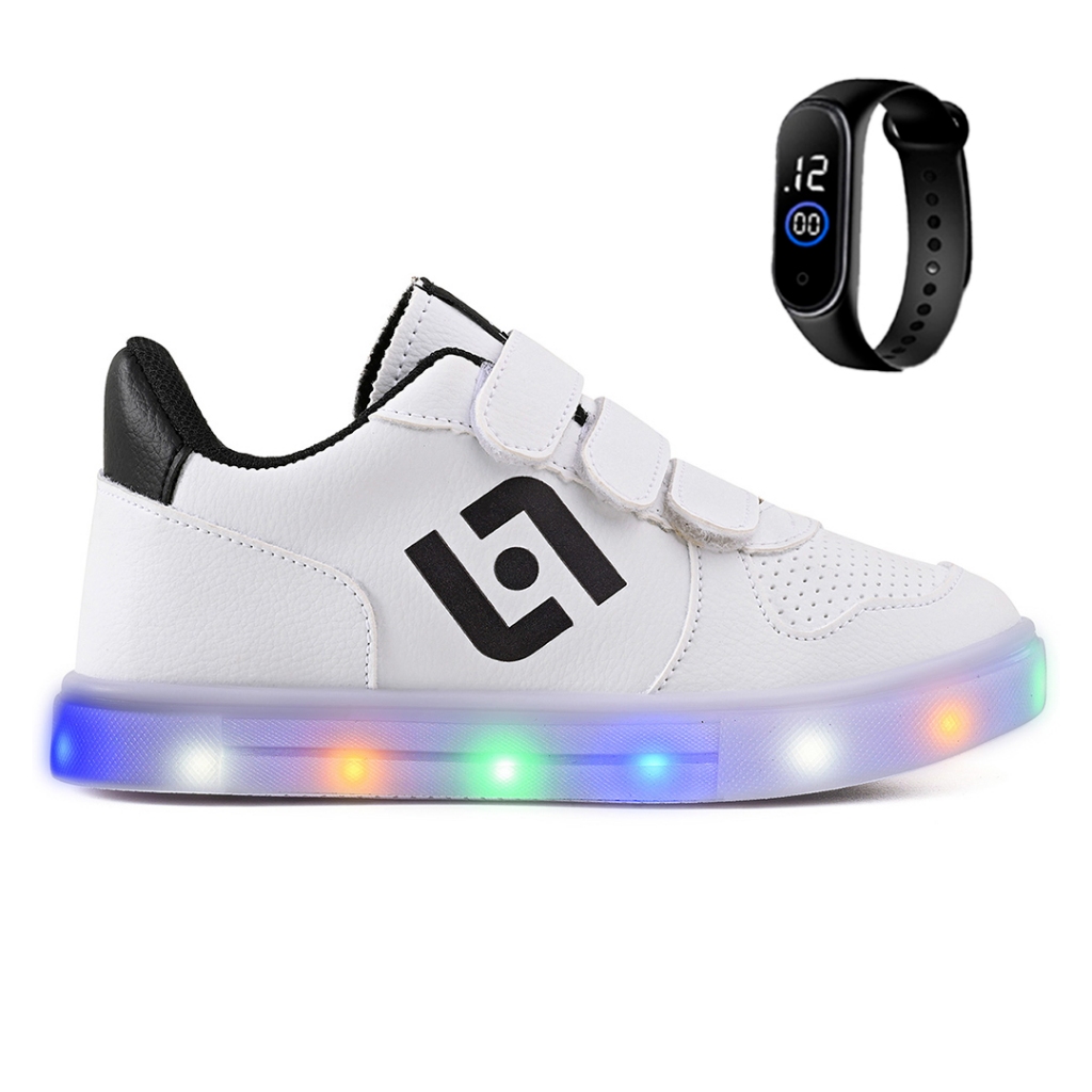 Tenis Infantil De Led Casual Escolar Sapatenis Meninos Street Calce Facil + Relogio