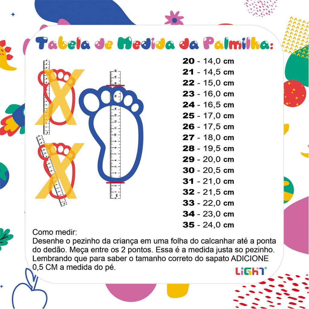 "O Tênis De Led masculino Light infantil casual foi criado com base nas últimas tendências da moda. É um calçado confortável e estiloso, ideal para uso diário. Seu design atualizado combina perfeitamente com diversos looks, permitindo que os pequenos estejam sempre na moda. Com sola de PVC e material resistente, esse tênis proporciona segurança e durabilidade. Além disso, seu ajuste perfeito garante o conforto necessário para que as crianças possam brincar e se divertir o dia todo. Um calçado que une moda e funcionalidade em um único produto. É ideal para uso diário como para ocasiões especiais! Itens enviado nessa compra: * Uma unidade de tênis de Led infantil casual. * Um Chinelo infantil INSTRUÇÕES DE LAVAGEM DO TENIS LIGHT * Não lavar calçados em máquina de lavar roupas, usar apenas pano úmido * Ao lavar seu calçado, a secagem deve ser realizada na sombra Nossos Produtos possuem garantia contra defeito de fabricação! • A medida da numeração é feita com base no tamanho aproximado da palmilha, sempre comprar com 0,5 cm de folga, por maior segurança. • Evite problemas com trocas por tamanho, decida com atenção a numeração deseajada seguindo a tabela a cima! Tabela de medidas do tênis Light: 20 = 14,0 cm 21 = 14,5 cm 22 = 15,0 cm 23 = 16,0 cm 24 = 16,5 cm 25 = 17,0 cm 26 = 17,5 cm 27 = 18,0 cm 28 = 19,5 cm 29 = 20,0 cm 30 = 20,5 cm 31 = 21,0 cm 32 = 21,5 cm 33 = 22,0 cm 34= 23,0 cm 35= 24,0 cm • Evite problemas com trocas por tamanho, decida com atenção a numeração deseajada seguindo a tabela acima!"