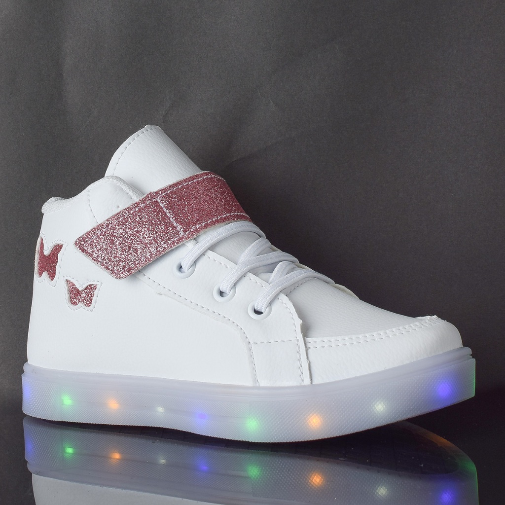 Tenis Infantil De Led Meninas Botinha Borboleta + Oculos