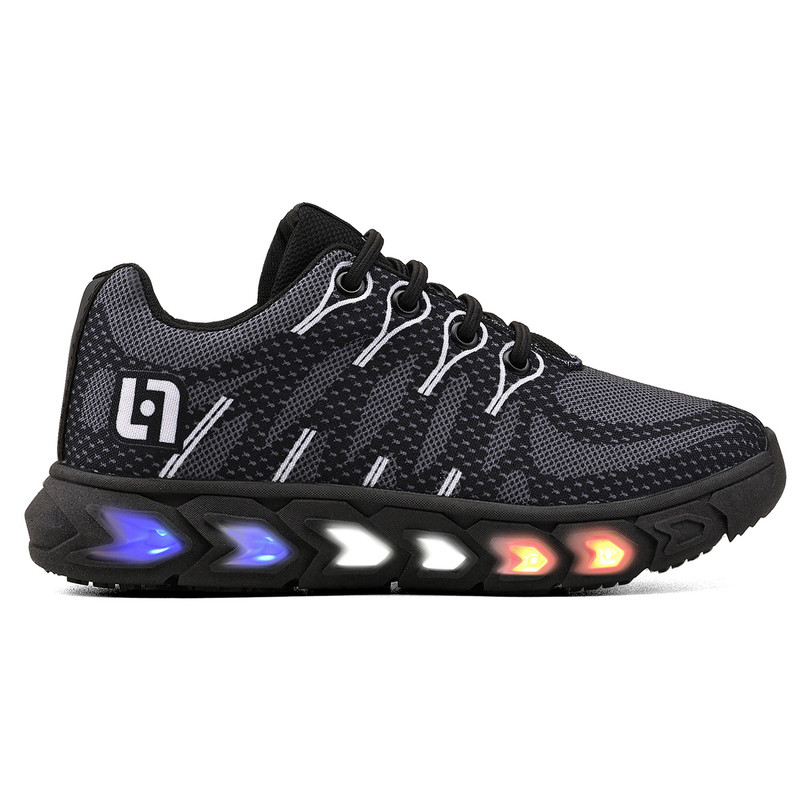 Tenis Infantil De Led Meninos Casual Preto Preto Com Luzes + Chinelo Óculos e Relógio