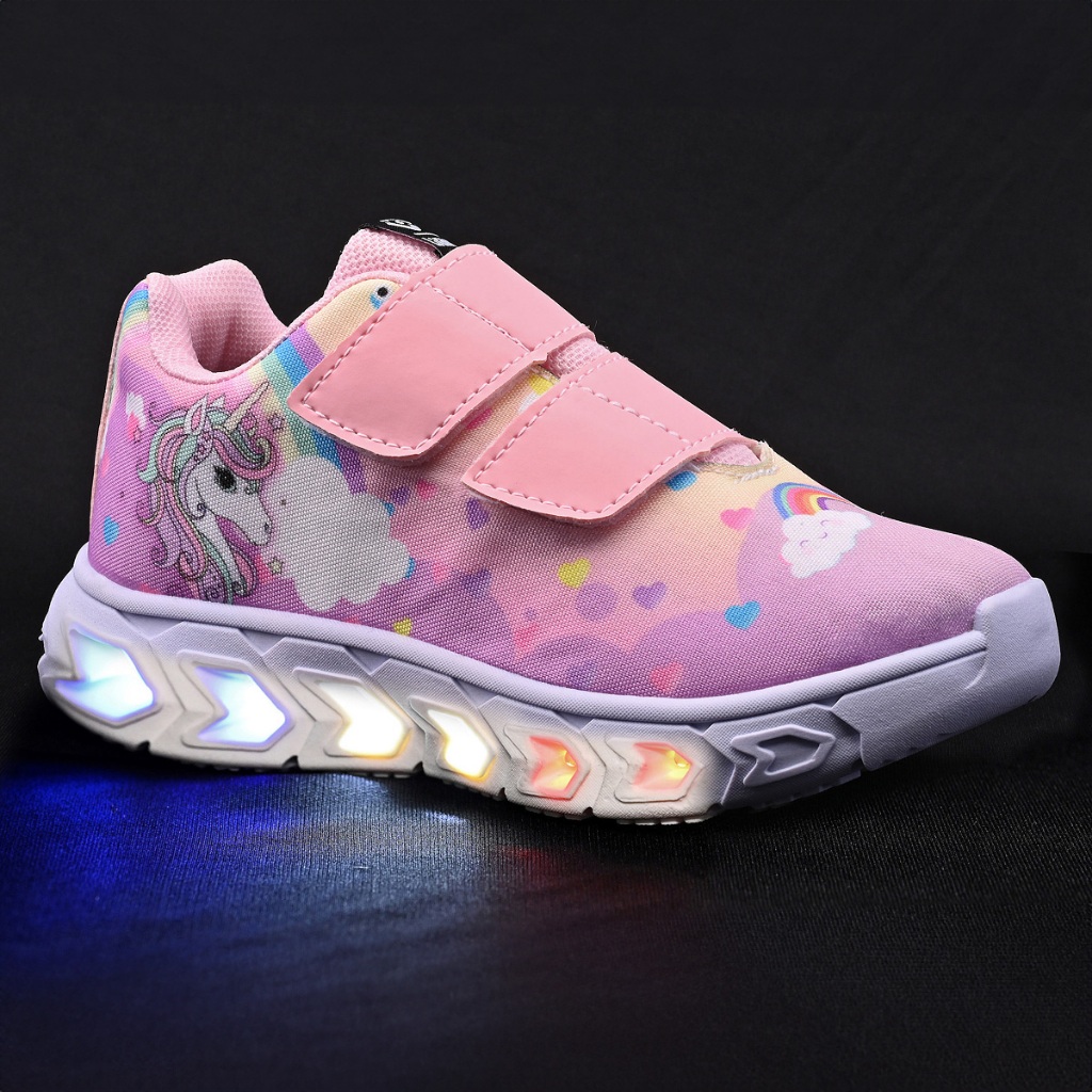 Tenis Infantil De Led Unicornio Meninas Casual + Chinelo