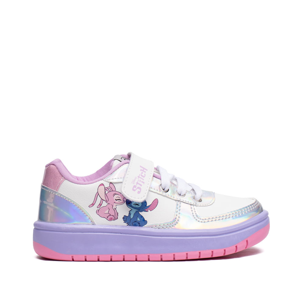 Tênis Infantil Disney Stitch Metalizado Branco/Lilás
