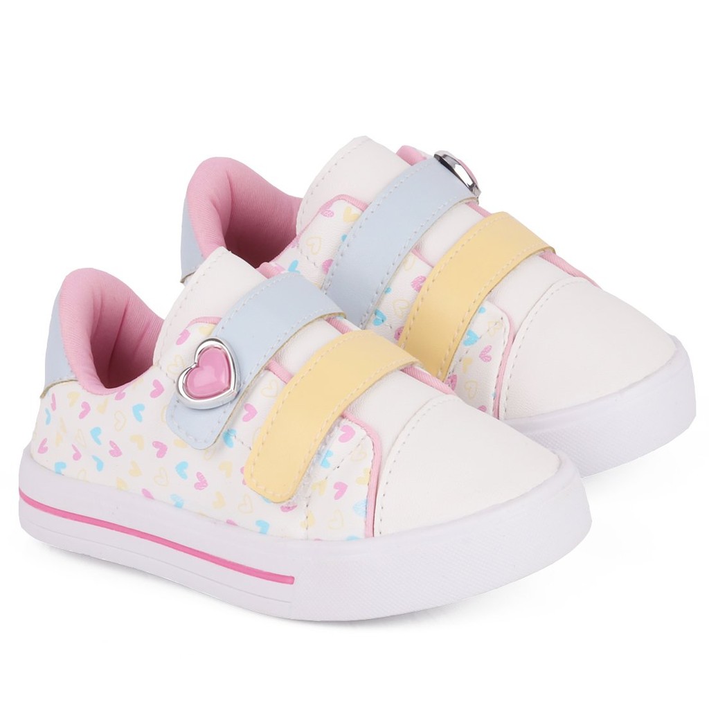 Tênis Infantil Feminino Casual Calce Fácil Velcro Coraçao Super Confortável - Branco
