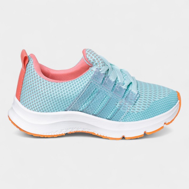 TABELA DE MEDIDAS N° 28 - 19,5 cm N° 29 - 20 cm N° 30 - 20,5 cm N° 31 - 21,3 cm N° 32 - 21,8 cm N° 33 - 22,3 cm Este tênis esportivo feminino combina conforto, estilo e praticidade. Com design moderno, ele traz cabedal em tecido mesh respirável na cor verde água, detalhes estampados em formato de coração e material sintético para maior firmeza nos pés, além de um forro acolchoado em tom salmão que garante um charme especial ao visual. A palmilha macia e a entressola com amortecimento proporcionam conforto durante todo o uso, enquanto o solado emborrachado com detalhes em rosa oferece aderência e segurança nas brincadeiras e atividades esportivas. Conta ainda com puxador traseiro para facilitar o calce. Disponível nas numerações do 28 ao 33, é a escolha perfeita para unir estilo e desempenho nas rotinas das meninas!