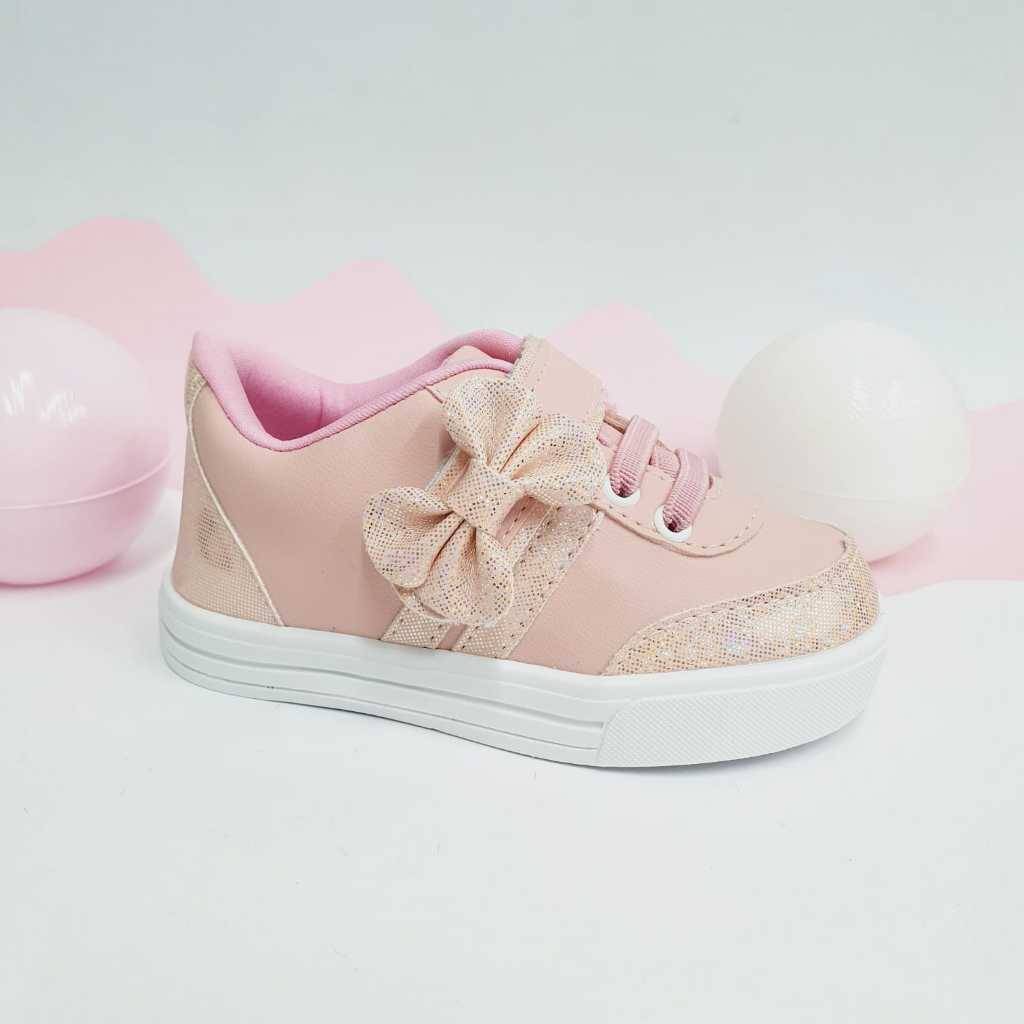 Tênis Infantil Feminino Lacinho Casual Confortável Velcro Menina