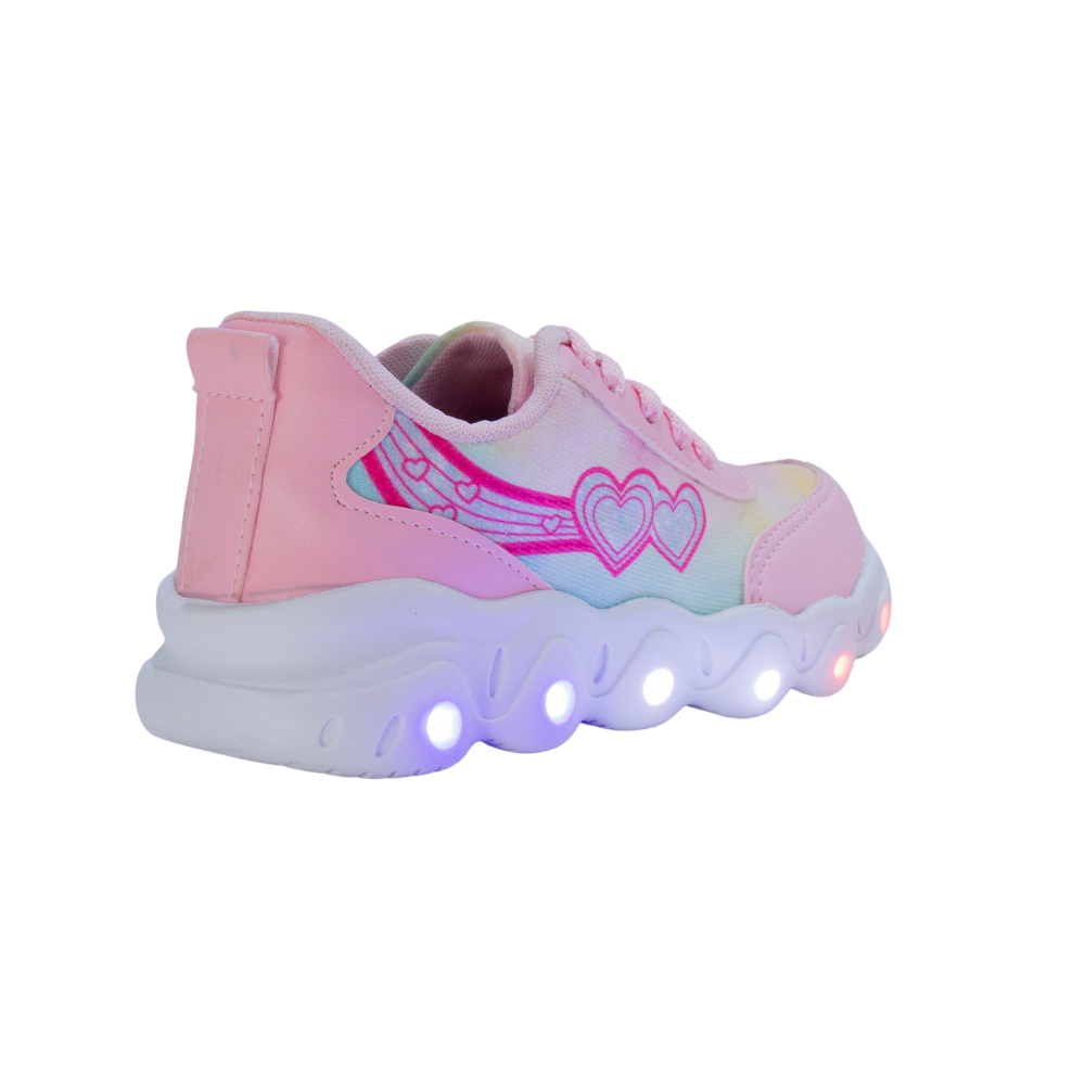Tênis Infantil Feminino Led Meninas Estrela Coração Rosa Escolar + Chinelo