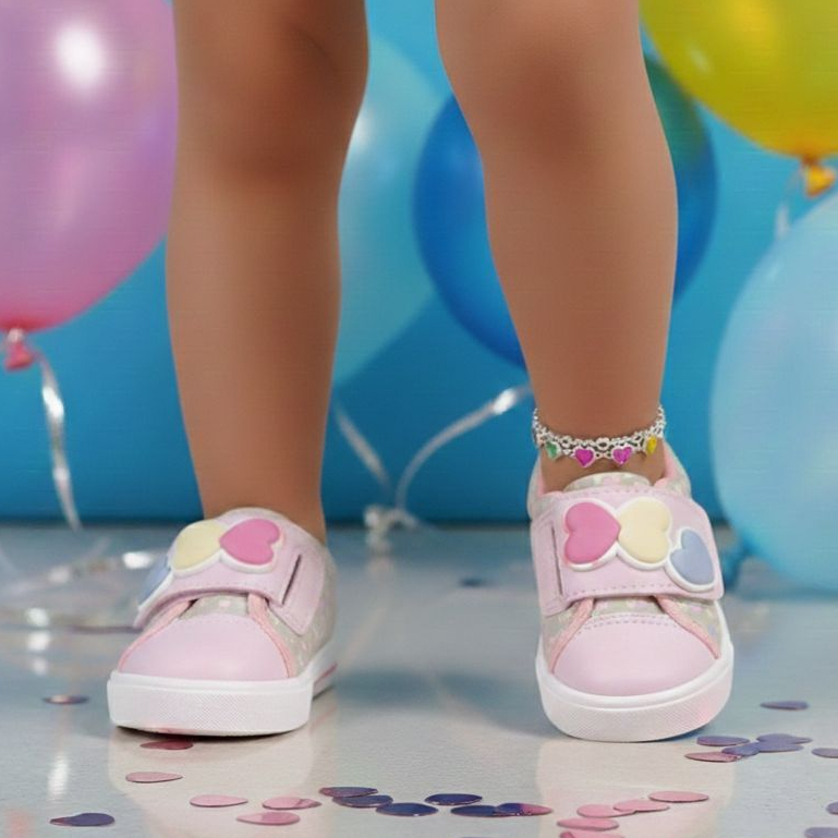 Tênis Infantil Feminino Menina Corações Conforto Antiderrapante Calce Facil