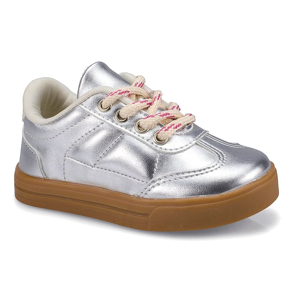 O Tênis Infantil Feminino Samba une o design clássico a um acabamento moderno e estiloso. Disponível em quatro variações — branco tradicional, dourado, prata e rosa brilhante — o modelo é ideal para compor diversos looks com personalidade. Confeccionado em material sintético de alta qualidade, o calçado apresenta um acabamento refinado e durável. O fechamento por cadarço garante um ajuste seguro, enquanto o interior, totalmente forrado com espumas macias na cor do produto, proporciona conforto prolongado durante o uso. A segurança é reforçada pelo solado em borracha crepe antiderrapante, que oferece excelente aderência. Com os detalhes tradicionais que definem a linha Samba, este modelo é a escolha perfeita para quem busca resistência, conforto e muito estilo em um único produto. Cores: Branco, Rosa, Dourado e Prata Tamanhos: 20 ao 34 Como medir o pé da criança: Selecione com atenção a cor e tamanho correspondentes com a medida do pé da criança. É importante estar com as medidas certas para realizar a compra, evitando trocas e devoluções. Passo 1: Coloque o pé da criança sobre uma folha de papel, em uma superfície reta. Passo 2: Marque o calcanhar e a ponta do dedão com um risco. Use a régua ou fita métrica para medir a distância entre as duas marcas e descubra a medida em centímetros do pé. Lembre-se que a medição começa a partir do número 0. A seguir, observe na tabela de medidas o número que mais se aproxima da quantidade de centímetros do pé da criança. Comparar com a tabela disponível. 20. 13.7 cm 21. 14.3 cm 22. 15 cm 23. 15.7 cm 24. 16.3 cm 25. 17 cm 26. 17.7 cm 27. 18.3 cm 28. 19 cm 29. 19.7 cm 30. 20.3 cm 31. 21 cm 32. 21.6 cm 33. 22.3 cm 34. 23 cm Tênis Infantil Feminino Samba - Características Gerais do Produto: • Faixa Etária: Pré Infantil - até 6 anos (20 ao 27); Infantil - até 7 anos (23 ao 32); Kids - até 10 anos (28 ao 36) • Gênero: Menina • Material Externo: Sintético • Cor: Branco, Prata, Dourado, Rosa • Solado: Emborrachado antiderrapante • Limpeza e Conservação: Lavagem manual. Não utilizar escova, detergentes ou solventes. Evitar molho e secar a sombra. • Tabela de Medidas: img/2026/01/produto/4278/linha-20-22-62.jpg Acompanha o produto: • 1 Par de Tênis • Caixa de Papelão Garantia: • Garantia de Fábrica