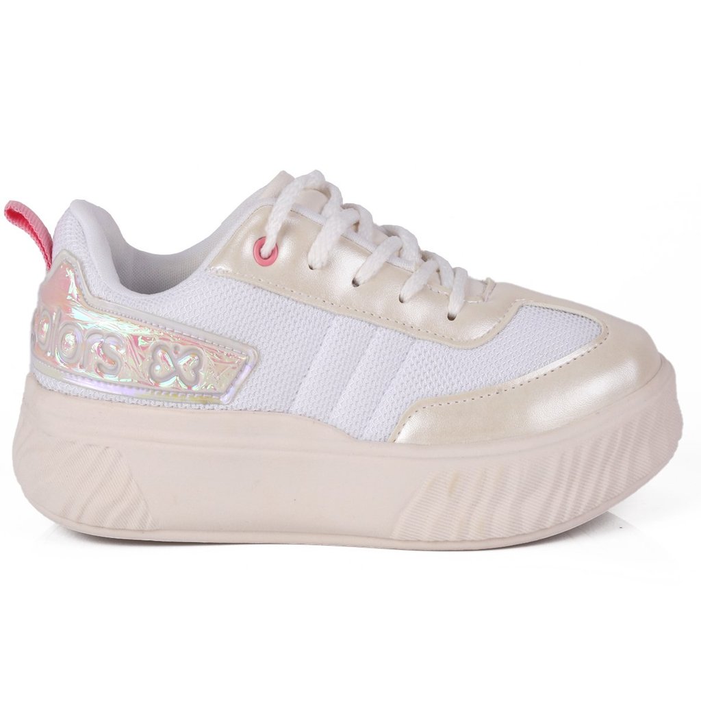 Tênis Infantil Feminino WorldColors Branco com Detalhes Holográficos – Conforto, Leveza e Estilo - Tênis infantil moderno com solado plataforma, acabamento perolado e detalhes holográficos que encantam em cada passo. O Tênis Infantil Feminino WorldColors Branco Holográfico foi feito para meninas que amam conforto e estilo em todas as ocasiões. Com design moderno e toque fashion, ele combina acabamento perolado, detalhes holográficos no calcanhar e solado robusto tipo plataforma, criando um visual atual que combina com qualquer look. A parte superior em tecido respirável com reforço sintético garante leveza e durabilidade, enquanto o interior acolchoado oferece conforto durante todo o dia. Ideal para passeios, escola ou momentos de lazer, o modelo traz amortecimento macio e solado emborrachado antiderrapante, proporcionando segurança e estabilidade a cada passo. Destaques do produto: Design moderno com brilho perolado e detalhe holográfico Solado plataforma leve e anatômico Palmilha macia e confortável Fechamento em cadarço para melhor ajuste Ideal para uso diário, escola e passeios O tênis perfeito para acompanhar as meninas com conforto, leveza e muito charme! Características Gerais do Produto: • Coleção: PV 2025 • Cor: Branco Garantia: 30 dias