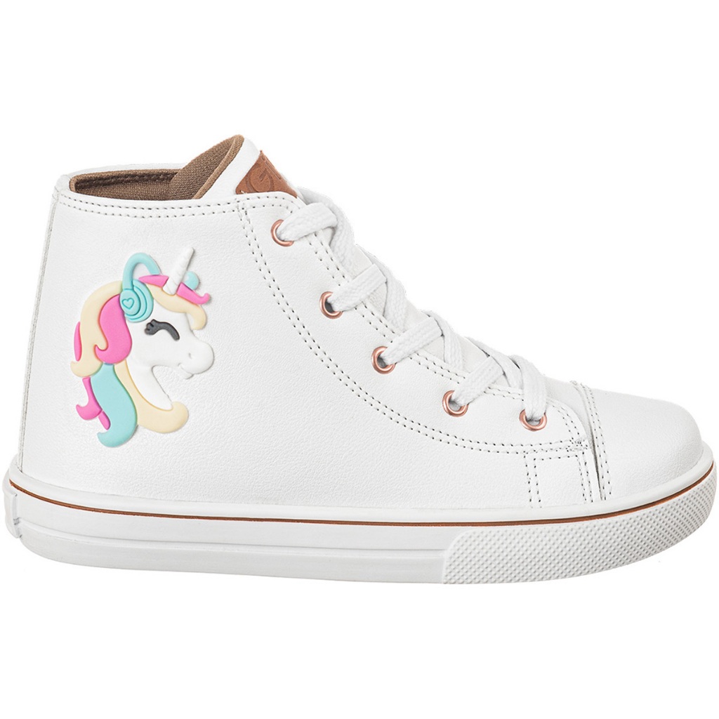 Tenis Infantil GiGiL Teen Feminino Enfeite Unicórnio Colorido Cano Alto Escolar Macio Leve Confortável Cadarço Star Moda