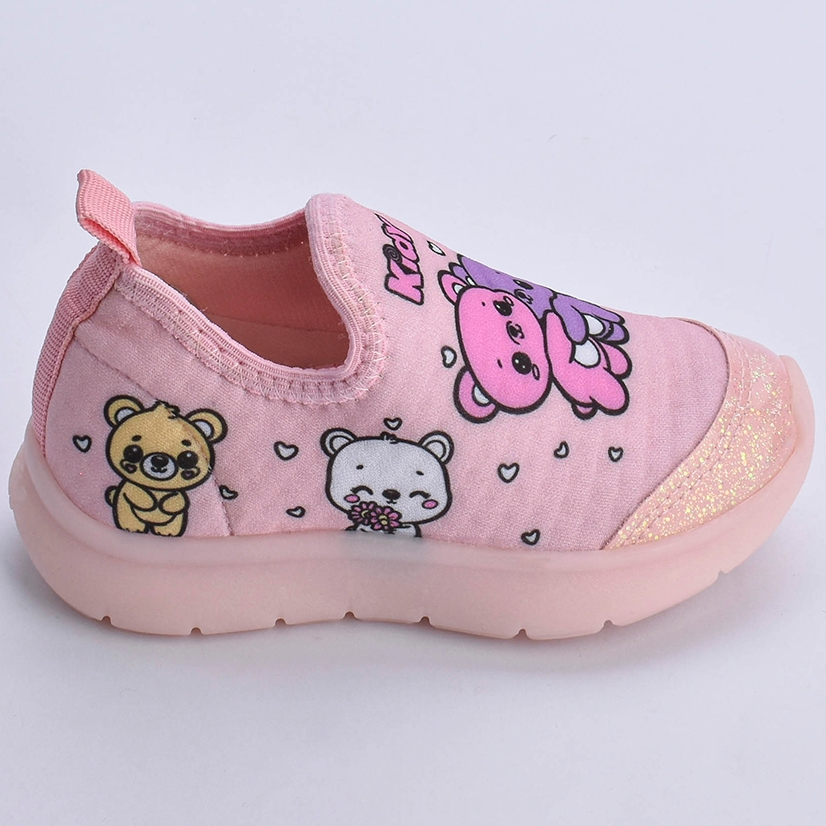 Tênis Infantil Kidy Flex Light Led Nude Calce Fácil Ursinho Leve Macio Antiderrapante