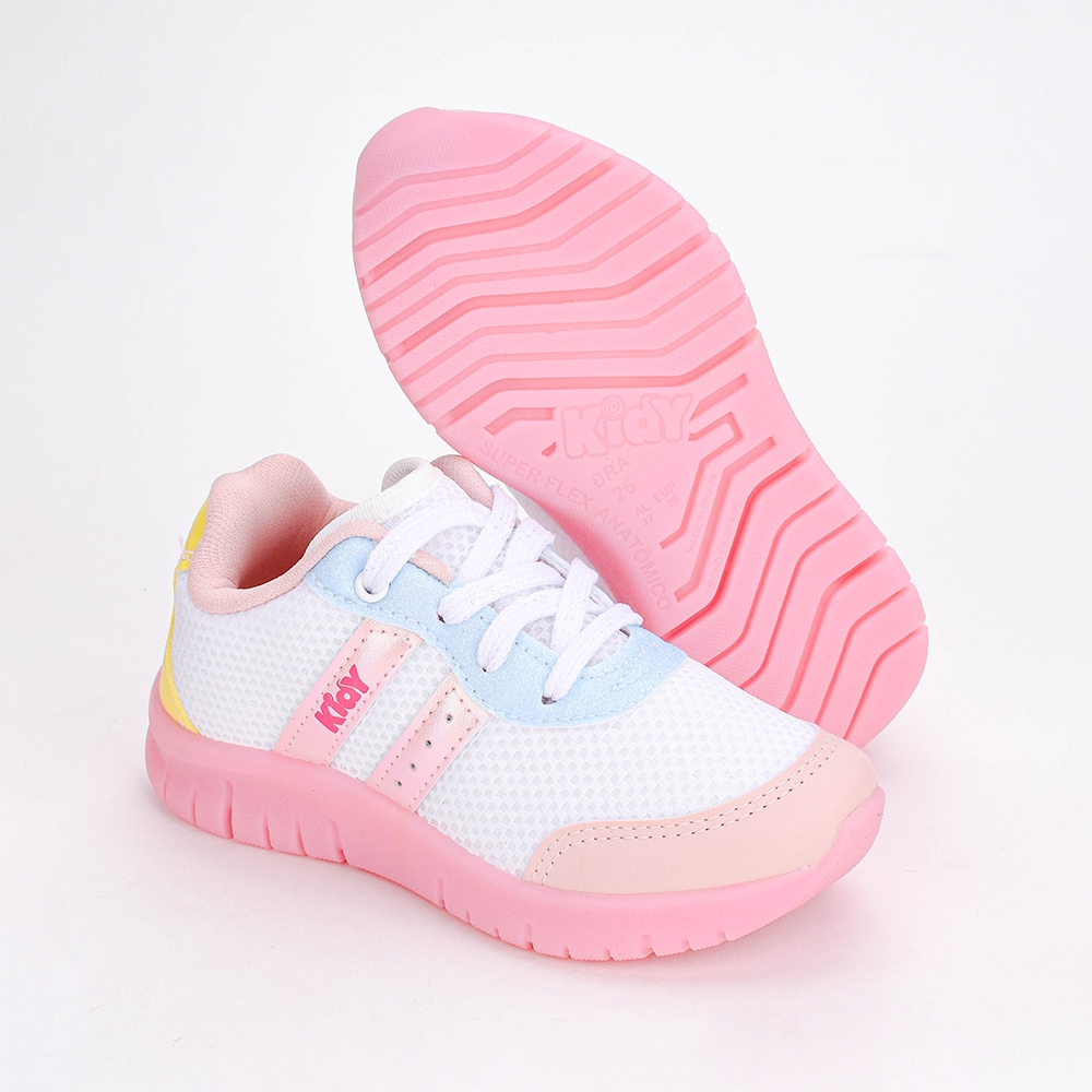 Tênis Menina Infantil Kidy Ultra Flex Branco e Colorido, uma solução completa para o calçado infantil que acompanha as demandas do crescimento. Projetado com expertise em biomecânica pediátrica, o modelo apresenta estrutura anatômica que respeita as fases naturais do desenvolvimento dos pés, garantindo conforto sem comprometer a mobilidade necessária para atividades cotidianas. O solado em TR oferece excelente antiderrapagem, proporcionando estabilidade e segurança em diferentes ambientes e superfícies. A flexibilidade estratégica do calçado permite movimentos naturais, essencial para o fortalecimento muscular adequado durante a infância. O sistema de calce intuitivo reduz o tempo de preparação diária, facilitando a rotina dos responsáveis enquanto estimula a autonomia das crianças. A paleta branco com detalhes coloridos combina funcionalidade com apelo visual, adaptando-se a diversos estilos e ocasiões. Desenvolvido pela Kidy com rigor técnico, este tênis integra segurança, conforto e praticidade em um único produto. Sempre pensando na saúde e conforto das crianças, todos os calçados Kidy possuem formato anatômico que auxilia no crescimento e desenvolvimento saudável dos pés. Tamanhos: dos 28 aos 36 Fechamento: cadarço Cabedal: mapa e lona Forro: cacharrel Palmilha: antibacteriana Sola: TR antiderrapante