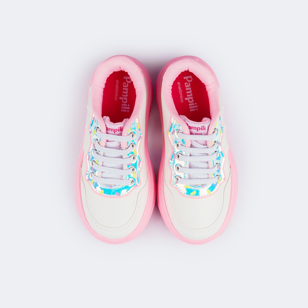 Tênis Infantil Led Docinho Rosa Branco Pampili