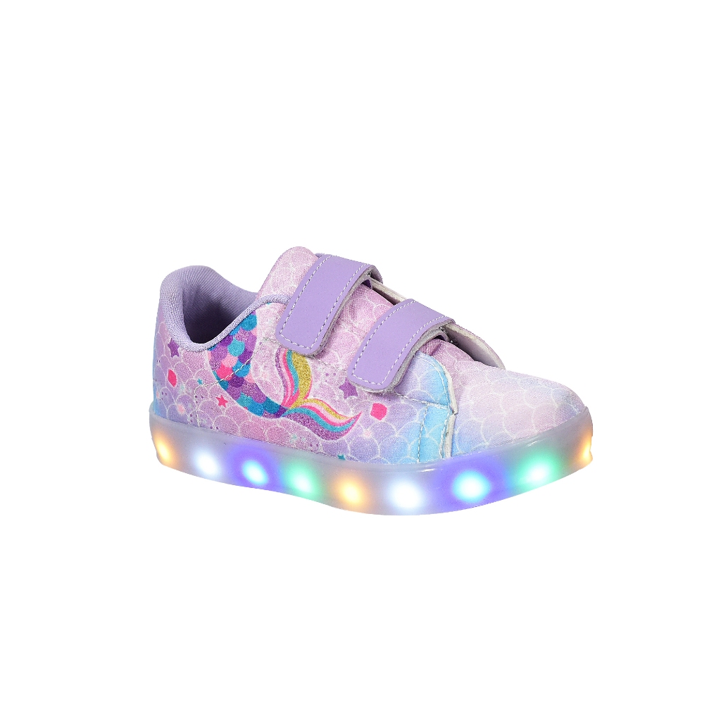 Tênis Infantil Led Feminino Casual Cano Baixo Sereia Menina + Chinelo