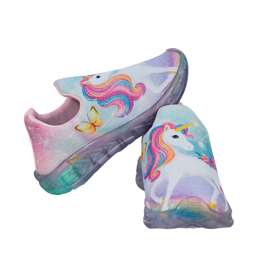 Tênis Infantil Led Feminino Unicórnio Celce Fácil Menina + Chinelo