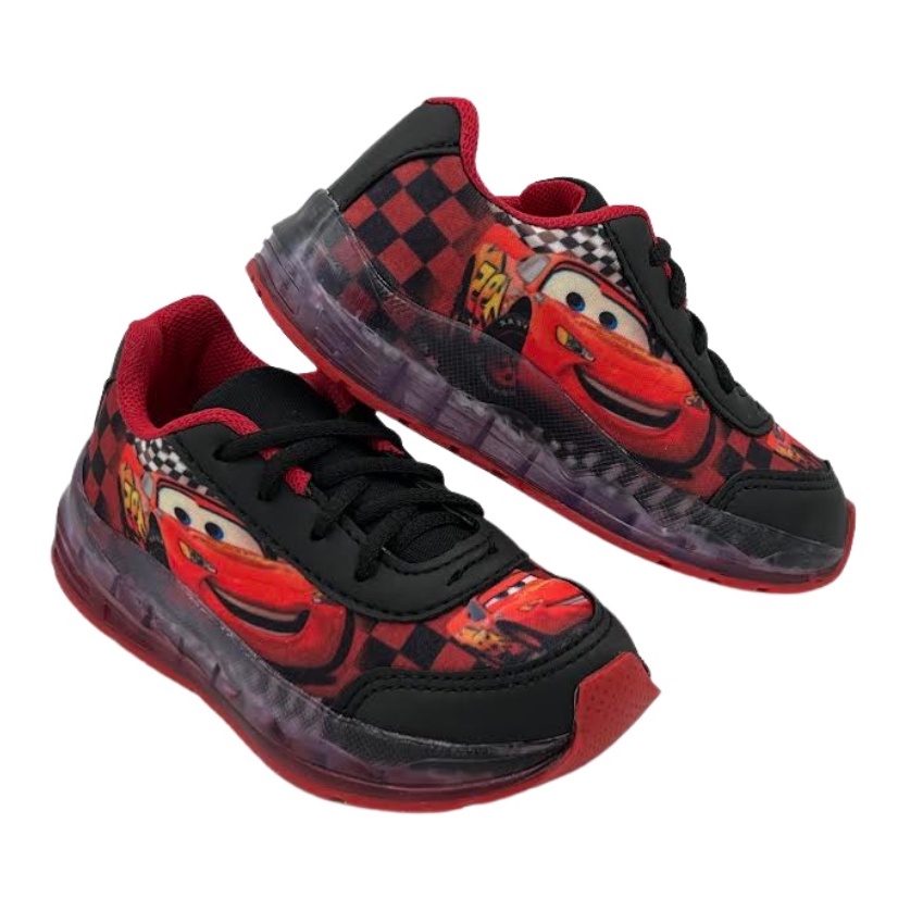 Tênis Infantil Masculino Carros Relâmpago McQueen Com Luzinha Colorida. Pisou Piscou. Lançamento.