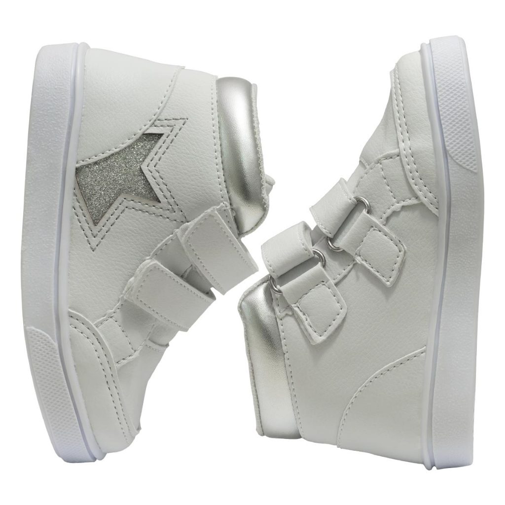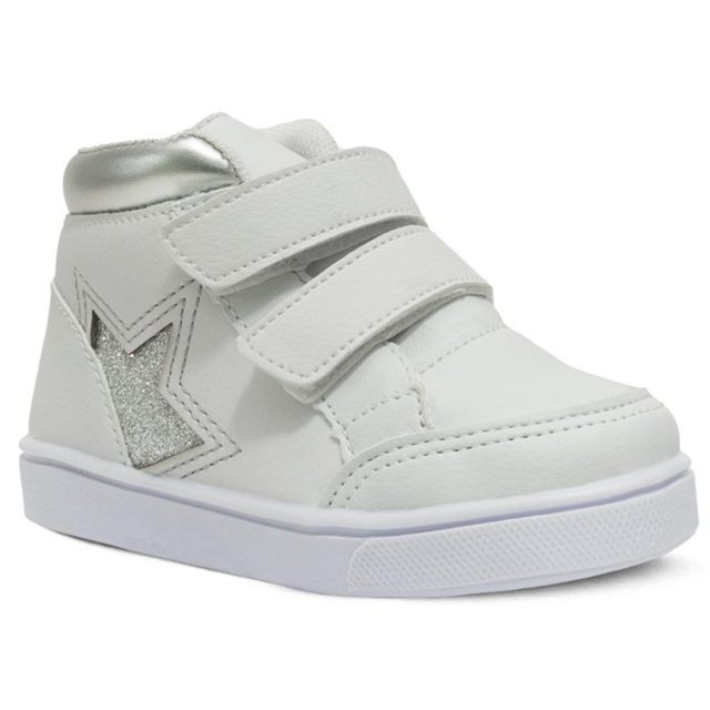 TÊNIS CANO ALTO Tamanho da Forma: Normal - Recomendamos que compre o tamanho padrão de uso, para melhor calce e maior conforto. Cores Disponíveis: • Branco • Prata Especificação Técnica: • Tipo de produto: Tênis cano alto infantil. • Material externo: Sintético. • Material interno: Têxtil. • Sola: PVC antiderrapante. • Peso médio do produto: 413 gramas. • Altura da sola: 2,0 cm. • Fechamento: Calce fácil. • Numeração: Será enviada pelo critério de escolha. • Embalagem: Cada par vai na sua caixa individual. Tabela de Medidas: 22 ---------------- 14,5 cm 23 ---------------- 15,5 cm 24 ---------------- 16,0 cm 25 ---------------- 16,8 cm 26 ---------------- 17,2 cm 27 ---------------- 18,0 cm Como Medir: Coloque o pé em cima de uma folha de papel e risque em volta dele com um lápis ou caneta. Meça o comprimento do topo até a base do contorno e adicione 0,5 cm de folga. Limpeza e Conservação: Evite usar substâncias abrasivas como álcool, detergentes ou solventes nos calçados, usar produtos neutros. Nunca os deixe de molho ou lave na máquina. A secagem deve ser feita em temperatura ambiente e na sombra, nunca no sol ou em máquinas. Dicas Pópidi: Com o nosso lindo tênis cano alto sua pequena vai brilhar com muito estilo e conforto. O calce fácil é um dos grandes diferenciais desse calçado, pois traz a praticidade necessária para o dia a dia, já o solado antiderrapante garante a segurança necessária nos momentos de diversão. O detalhe em estrelas dá um toque especial, transformando qualquer look em algo mágico e divertido. Para aproveitar ao máximo o tênis cano alto estrela, combine-o com uma calça jeans e uma camiseta básica para um visual despojado e confortável, ideal para o dia a dia ou passeios no parque. Em ocasiões especiais, como festinhas, use o tênis com uma saia ou vestido colorido para adicionar um toque extra de charme ao look. Sobre a Marca: Conectados com o universo infantil através de produtos que transmitem nossos valores, a Pópidi acompanha o dia a dia da criança com muito respeito, dedicação e atitude, desde o nascimento até a pré-adolescência. Oferecemos proteção, conforto e estilo, buscando sempre inovar a cada lançamento. Cuidando com excelência da relação pré e pós-vendas, afinal a satisfação de nossos clientes é muito importante para nós. Atendimento: Segunda à sexta: 07:00 às 18:00 Sábado: 08:00 às 12:00 Boas compras e volte sempre!!!