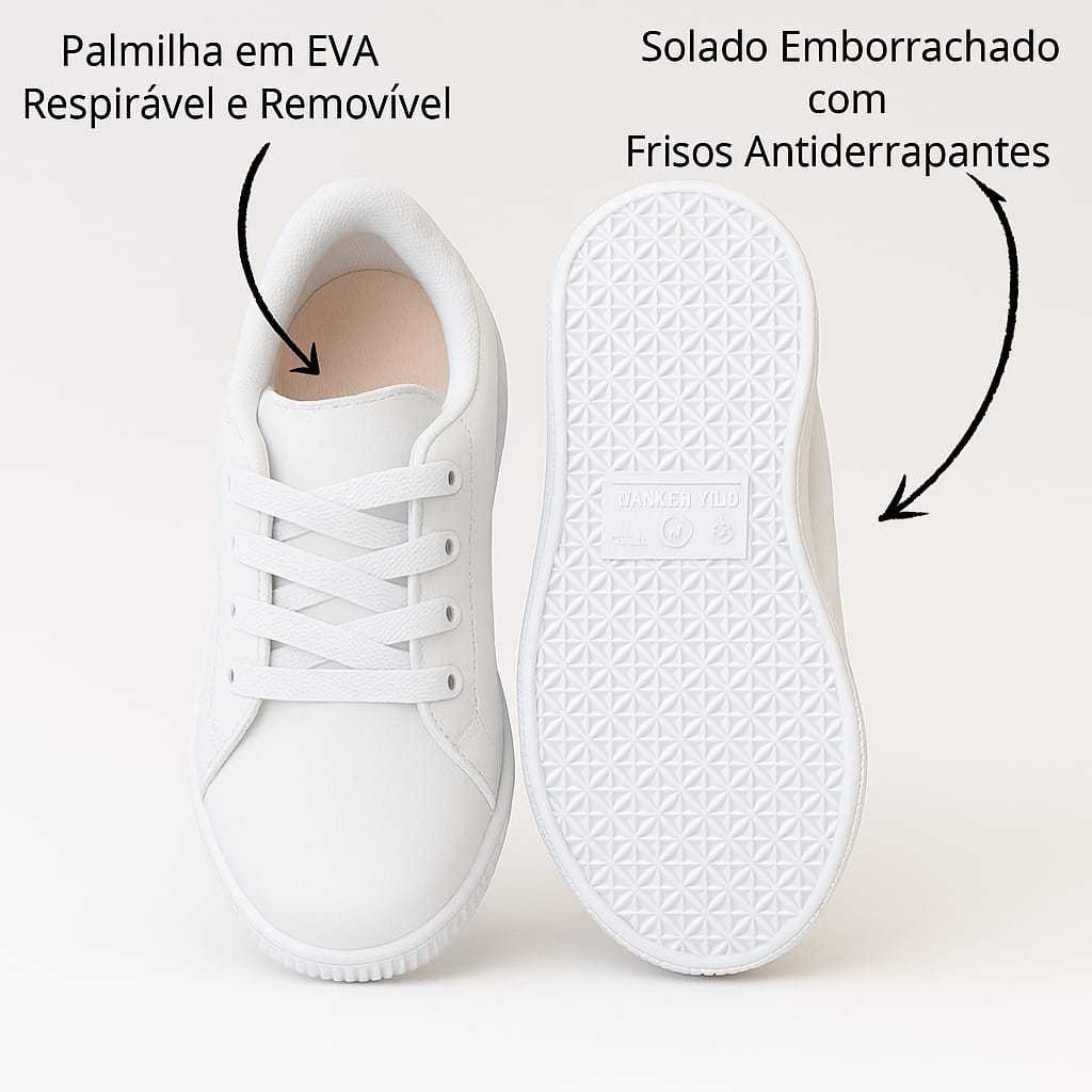 Tênis Infantil Menina Casual Feminino Escolar Anatômico Confortável Branco