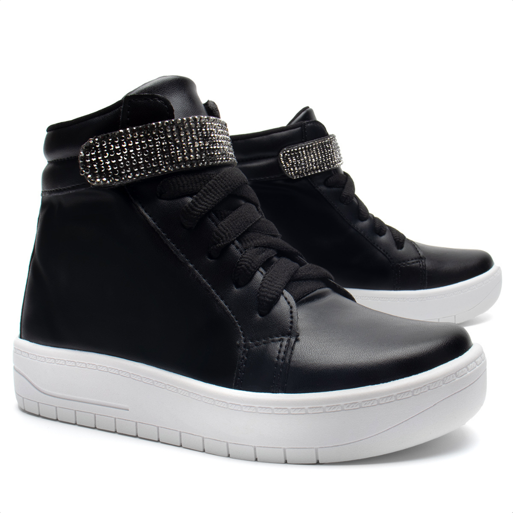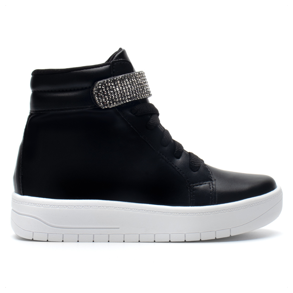O tênis casual de cano alto é ideal para meninas estilosas que sempre estão ligadas na moda, sua tira de strass é seu principal diferencial, essa nova tendência chegou com tudo! Cor Disponível (sempre seguir a cor original da foto do produto): • Preto • Dourado Especificação Técnica: • Tipo de produto: Tênis Casual Infantil. • Material externo: Sintético. • Material interno: Tecido Helanca. • Palmilha: Confortável com aplique da logo Menina Fashion. • Sola: Micro Expandido • Peso médio do produto: 175 gramas. • Tipo de Salto: Sem salto • Altura da sola: 3,0 cm. • Fechamento: Cadarço. • Numeração: Será enviada pelo critério de escolha. • Embalagem: Cada par vai na sua caixa individual. A medida pode variar em 0,5 cm, de acordo com o tamanho do calçado. Medidas da palmilha: • 28---------------- 18,6 cm • 29---------------- 19,4 cm • 30---------------- 20,0cm • 31---------------- 20,7 cm • 32---------------- 21,5 cm • 33---------------- 22,0 cm • 34---------------- 22,8 cm • 35---------------- 23,5 cm • 36---------------- 24,0 cm Dicas Menina Fashion: Um modelo de coturno infantil confortável e muito fofo, ele ficará perfeito com uma calça legging ou um jeans. Um calçado infantil produzido com materiais resistentes. Uma menina fashion vai poder curtir suas aventuras estando estilosa e com muito conforto. Sobre a marca: A marca Menina Fashion é para meninas que são apaixonadas por moda e diversão. Nossos calçados são produzidos especialmente para você brincar e se divertir com muito conforto e estilo. Viva incríveis momentos com nossos calçados. Trabalhamos com diversos produtos infantis, sendo eles: sandalias femininas, sandália anabela, sandália salto, sandália rasteira, rasteirinhas, sandália tratorada, sandália animal print, sapatilha, chinelo rasteiro, espadrile, avarca, peep toe, pedraria, perola, slipper, mule, tênis feminino, tênis infantil, sapatenis feminino, sapatenis infantil, tenis plataforma, bota, bota infantil, bota cano curto, bota over the knee, bota montaria, coturno, coturno infantil, cano alto, cano baixo, tênis chunky.