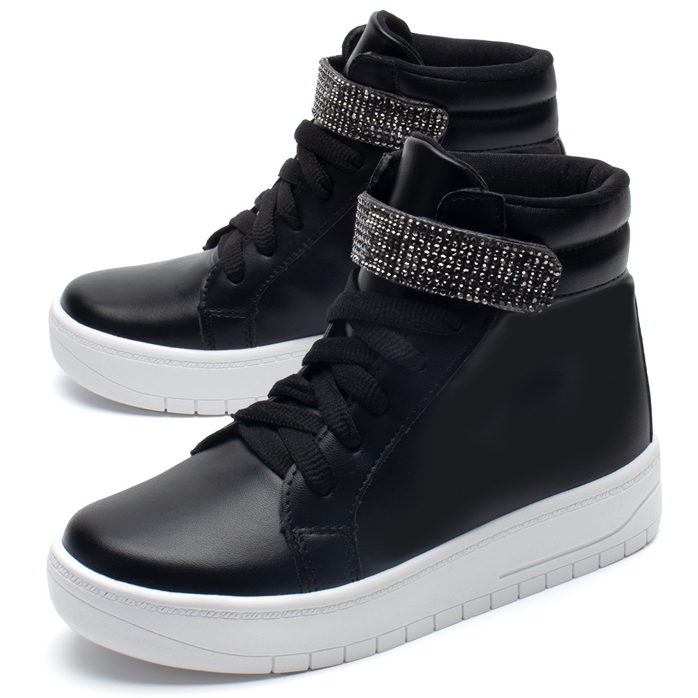 O tênis casual de cano alto e ideal para meninas estilosas que sempre estão ligadas na moda, sua tira de strass e seu principal diferencial, essa nova tendencia chegou com tudo! Cor Disponível (sempre seguir a cor original da foto do produto): • Preto • Dourado Especificação Técnica: • Tipo de produto: Tênis Casual Infantil. • Material externo: Sintético. • Material interno: Tecido Helanca. • Palmilha: Confortável com aplique da logo Menina Fashion. • Sola: Micro Expandido • Peso médio do produto: 195 gramas. • Tipo de Salto: Sem salto • Altura da sola: 3,0 cm. • Fechamento: Cadarço. • Numeração: Será enviada pelo critério de escolha. • Embalagem: Cada par vai na sua caixa individual. A medida pode variar em 0,5 cm, de acordo com o tamanho do calcado. Medidas da palmilha: • 28---------------- 18,6 cm • 29---------------- 19,4 cm • 30---------------- 20,0cm • 31---------------- 20,7 cm • 32---------------- 21,5 cm • 33---------------- 22,0 cm • 34---------------- 22,8 cm • 35---------------- 23,5 cm • 36---------------- 24,0 cm Dicas Menina Fashion: Um modelo de coturno infantil confortável e muito fofo, ele ficara perfeito com uma calca legging ou um jeans. Um calcado infantil produzido com materiais resistentes. Uma menina fashion vai poder curtir suas aventuras estando estilosa e com muito conforto. Sobre a marca: Na Domidona partilhamos o verdadeiro sentimento da mulher empoderada, dona de si mesma, forte, moderna e atual. Somos uma empresa referência na fabricação de calçados femininos. Existimos para auxiliar a transformação das mulheres e empoderar através do design e da qualidade. Tudo isso com preços acessíveis. Nossa experiência está comprovada em cada calçado elaborado, com muito conhecimento, atitude e vasta pesquisa. Somos apaixonados por moda e tendências do mundo fashion, e por isso, desenvolvemos sempre o que há de melhor dentro dos propósitos de cada mulher, dona de si mesma. Respeitamos as pessoas, o Meio Ambiente e a cada ideia nova emergida, somos sentimento e sinceridade. Trabalhamos com uma grande variedade de produtos, modelos e cores, temos sandálias femininas, sandália salto grosso, salto alto, sandália plataforma, rasteirinhas, sandália tratorada, scarpins, bico fino, bico redondo, sapatilha, rasteira, chinelo rasteiro, espadrille, avarca, peep toe, pedraria, perola, slipper, mule, tenis feminino, sapatenis feminino, tenis plataforma, bota, coturno, cano alto, cano baixo.