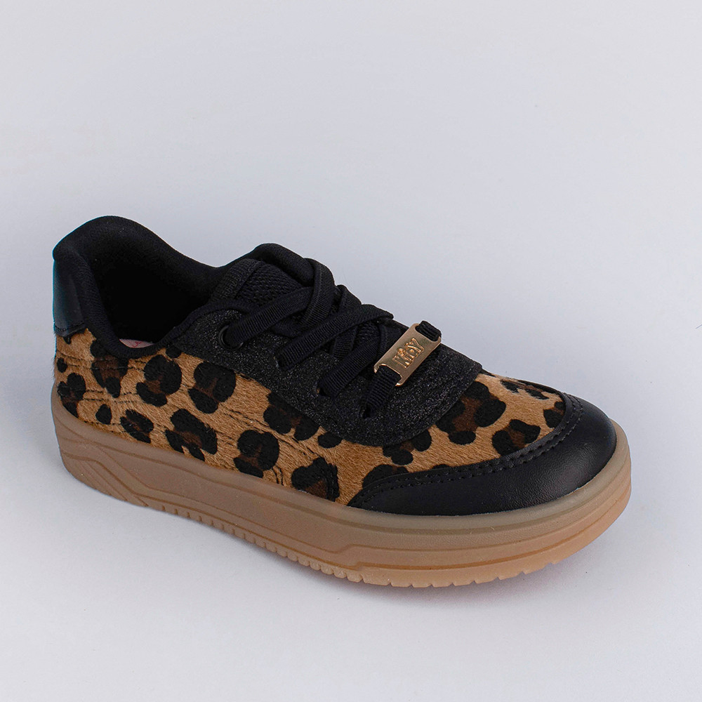 Tênis Infantil Menina Kidy Happy Estampa Onça Confortável Cano Baixo Escolar Casual Calce Fácil