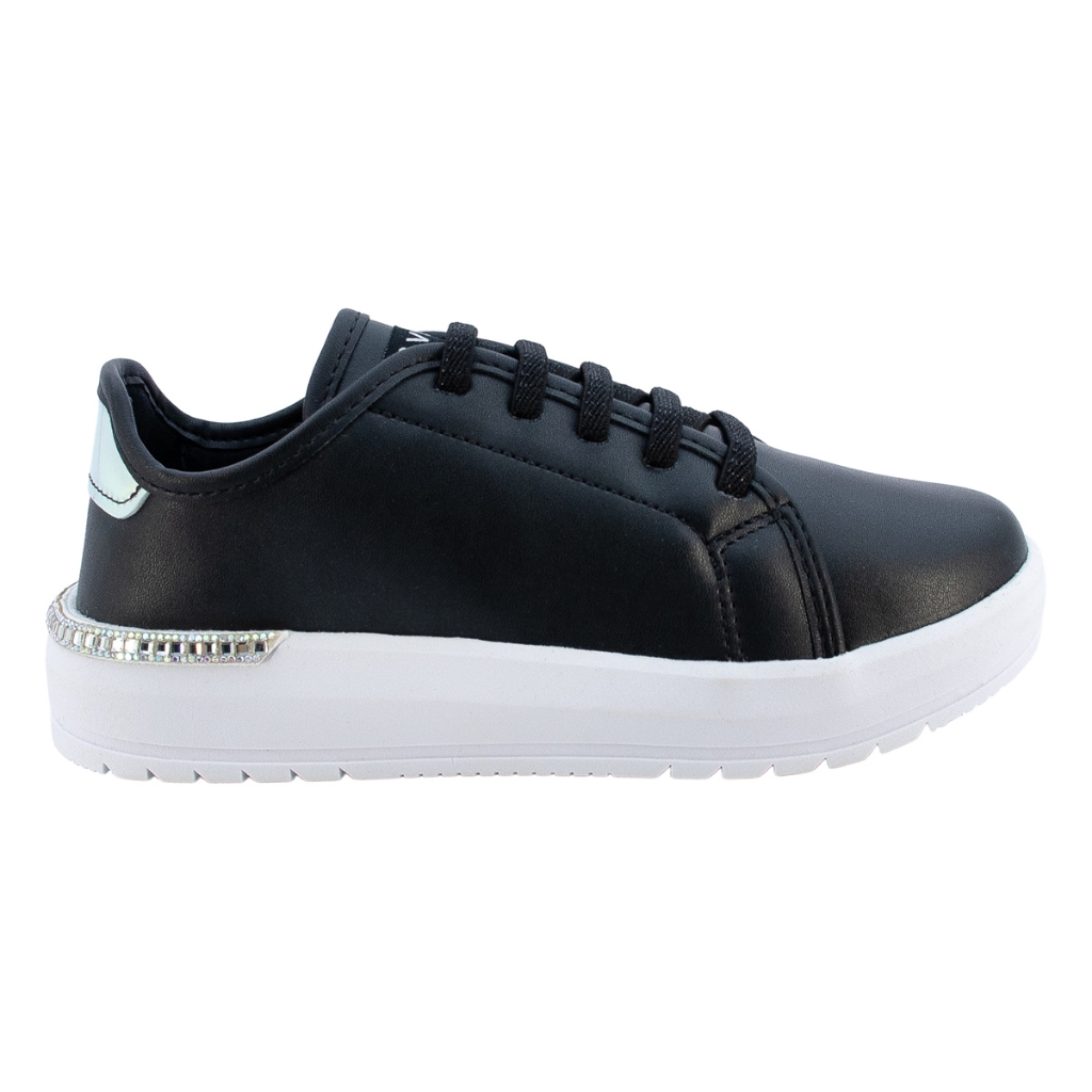 Tênis Infantil Menina Star Casual Preto Básico Liso Fácil de Limpar Detalhe em Strass