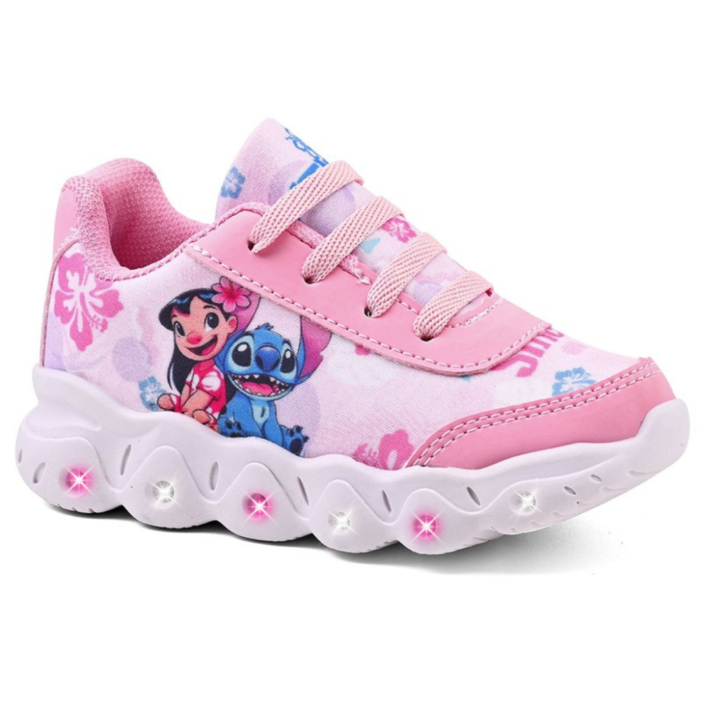 Tênis Infantil Menina Stitch Com Led Super Confortável e Leve