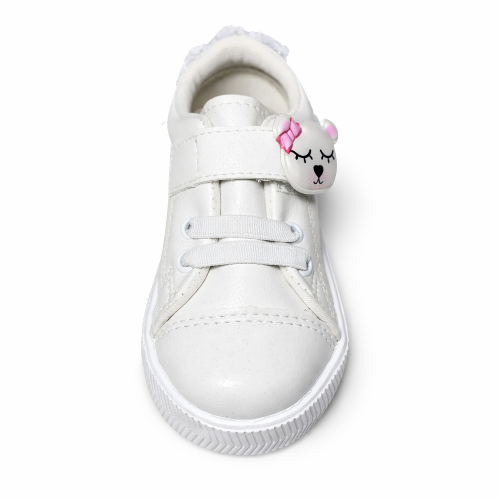 Encante-se com este adorável tênis infantil, pensado com todo o carinho para acompanhar os passos da sua pequena com segurança, conforto e muito charme! Destaques do produto: Design lúdico com ursinho sorridente e lacinho rosa, que encanta em cada detalhe. Fechamento em velcro, ideal para facilitar o calce e garantir mais autonomia para a criança. Solado antiderrapante com detalhe de coração, promovendo segurança ao caminhar. Confeccionado em material macio e resistente, com acabamento delicado Ideal para passeios, festas e momentos especiais Indicado para bebês e crianças pequenas. Presente perfeito para quem ama unir fofura e praticidade! Deixe sua pequena ainda mais estilosa e pronta para brilhar por onde passar!