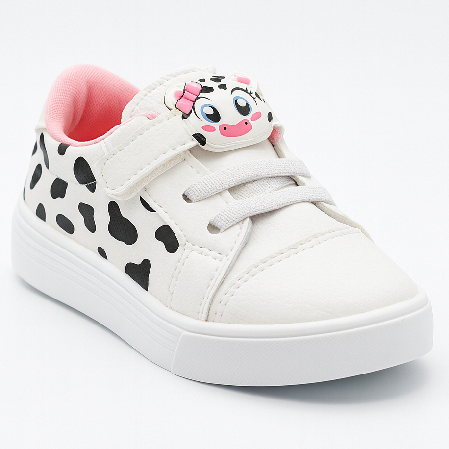 Tênis Infantil Menina Vaquinha Branco Confortável Dia das Crianças Volta as Aulas Promoção Dia a Dia