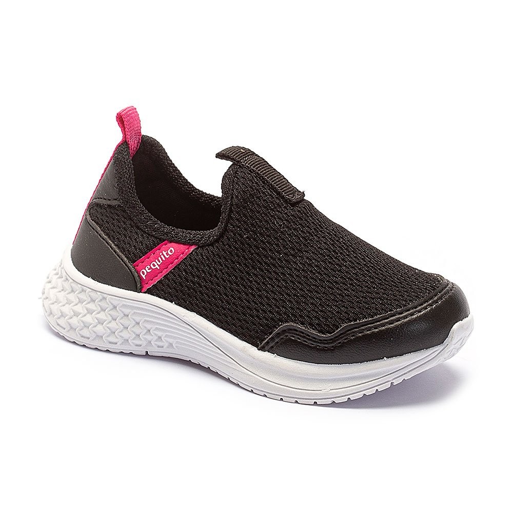 Conforto, estilo e praticidade para acompanhar os pequenos em todos os momentos do dia! Esse tênis jogging da Pequito é ideal para crianças ativas que precisam de um calçado versátil, resistente e super confortável — tudo isso com um design esportivo moderno que combina com qualquer ocasião. Disponível da numeração 20 ao 34, ele é confeccionado com material elástico de alta qualidade, que não esgarça e garante um ajuste firme e confortável nos pezinhos. O acabamento é impecável: recortes bem feitos, costuras reforçadas e um visual clean, com detalhes que fazem a diferença. A palmilha fofinha proporciona o conforto necessário para a rotina escolar, enquanto o solado antiderrapante garante segurança nos movimentos, seja na hora de brincar, correr, praticar esportes ou passear com a família. Além disso, ele é super fácil de calçar e tirar, ideal para promover a autonomia das crianças no dia a dia. Um tênis que combina com todos os tipos de uniforme e é perfeito para o uso diário e as atividades do contraturno. Destaques do produto: Numeração: do 20 ao 34; Solado antiderrapante; Material elástico de alta qualidade (não esgarça); Palmilha macia e superconfortável; Design esportivo e moderno; Acabamento e costuras perfeitas; Fácil de calçar e tirar (ideal para promover autonomia); Versátil: ideal para escola, atividades físicas e passeios. Numeração: 20 ao 34 Cores: Preto com pink . Como medir o pé da criança: Selecione com atenção a cor e tamanho correspondentes com a medida do pé da criança. É importante estar com as medidas certas para realizar a compra, evitando trocas e devoluções. Passo 1: Coloque o pé da criança sobre uma folha de papel, em uma superfície reta. Passo 2: Marque o calcanhar e a ponta do dedão com um risco. Use a régua ou fita métrica para medir a distância entre as duas marcas e descubra a medida em centímetros do pé. Lembre-se que a medição começa a partir do número 0. A seguir, observe na tabela de medidas o número que mais se aproxima da quantidade de centímetros do pé da criança. Tabela de Medidas 20. 13 cm 21. 13.6 cm 22. 14.3 cm 23. 15.0 cm 24. 15.6 cm 25. 16.3 cm 26. 17.0 cm 27. 17.6 cm 28. 18.3 cm 29. 19.0 cm 30. 19.6 cm 31. 20.3 cm 32. 21.0 cm 33. 21.6 cm 34. 22.3 cm Tênis Infantil Menina Jogging Casual - Características Gerais do Produto: • Faixa Etária: Pré Infantil - até 6 anos (20 ao 27); Infantil - até 7 anos (23 ao 32); Kids - até 10 anos (28 ao 36) • Gênero: Menina • Material Externo: Textil • Cor: Preto, Preto com Rosa • Solado: Emborrachado antiderrapante • Limpeza e Conservação: Lavagem manual. Não utilizar escova, detergentes ou solventes. Evitar molho e secar a sombra. • Tabela de Medidas: img/2025/08/produto/4017/tabela-de-medidas-linha-52.jpg Acompanha o produto: • 1 Par de Tênis • Caixa de Papelão Garantia: • Garantia de Fábrica
