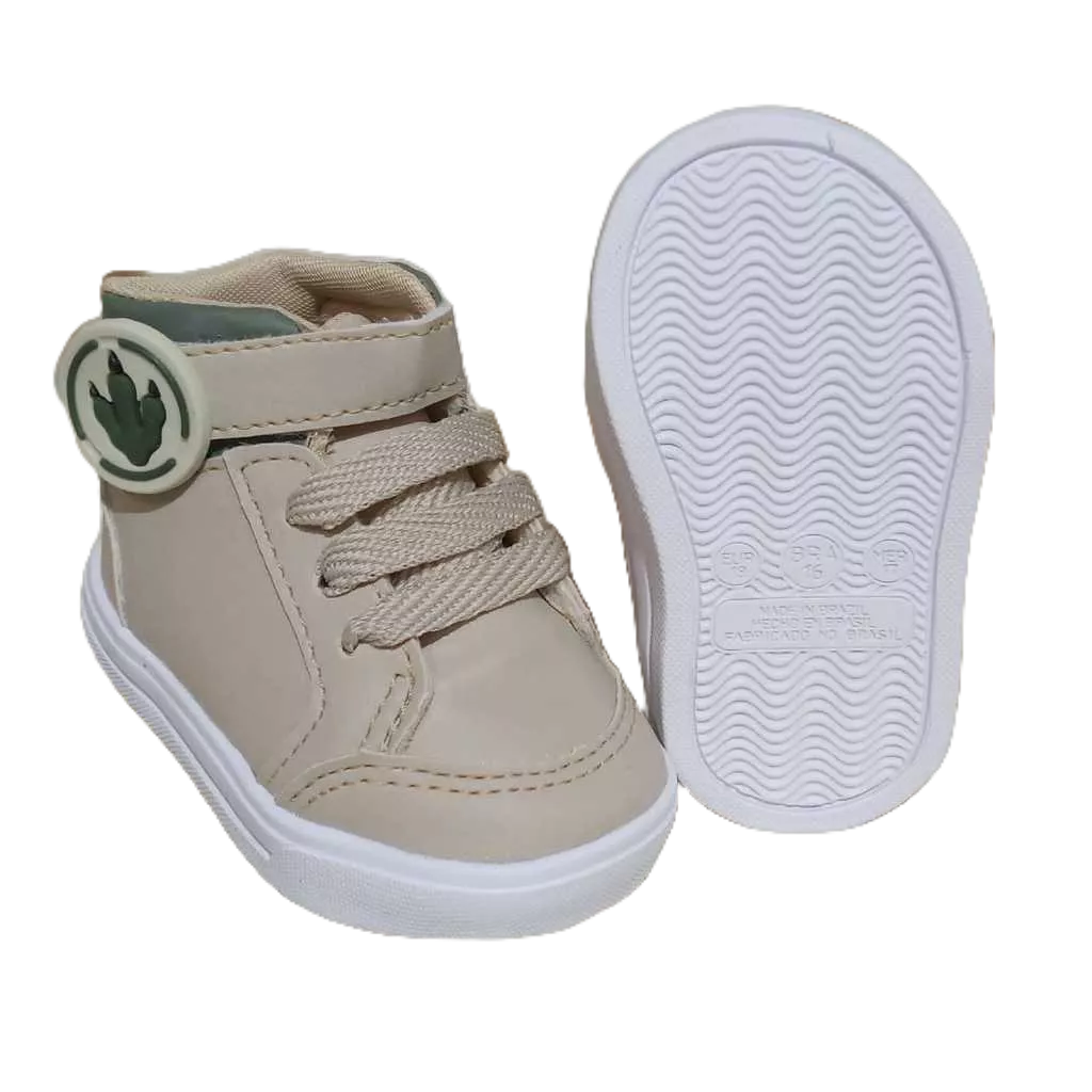 Tênis infantil menino botinha dino bebê bege dinossauro presente