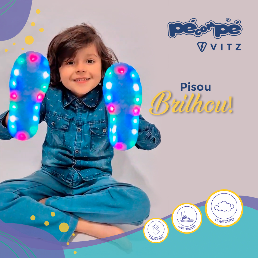 *** ATENÇÃO *** Gentilmente solicitamos, sempre antes da compra, conferir as medidas na tabela abaixo conforme o comprimento do pé da criança. COMO MEDIR: Desenhe o pé da criança em uma folha, risque na posição do começo do calcanhar, e na frente do dedão e utilize a medida entre os dois. TABELA DE MEDIDAS: Tamanho 23 --- 14.8 cm Tamanho 24 --- 15.5 cm Tamanho 25 --- 16.2 cm Tamanho 26 --- 16.8 cm Tamanho 27 --- 17.5 cm Tamanho 28 --- 18.2 cm ....... ESPECIFICAÇÕES DO PRODUTO ....... *Material Externo - Tecido e Sintético *Material Interno - Tecido Super Confortável *Palmilha EVA - Confortável com a logo *Solado - Borracha Diversão garantida com o Tênis Infantil com luzes da Pé com Pé! Em tom azul com solado translúcido, ele se destaca com luzes coloridas que piscam ao caminhar, transformando cada passo em um show de cores. Além de estiloso, o modelo é leve, macio e possui cadarço elástico, oferecendo mais autonomia e conforto para os pequenos nas brincadeiras do dia a dia. *** PÉ COM PÉ - CONCEITOS DE MENINOS E MENINAS *** A Pé com Pé é uma Marca especializada em calçados infantis masculinos e Femininos. A marca projeta através de suas coleções uma criança moderna, atual e com personalidade. Tudo seguindo as tendências internacionais de moda e com combinações de cores incríveis! Nossos produtos têm design exclusivo e perfeito ajuste aos pés das crianças, garantindo conforto e bem estar. A combinação de looks com os calçados Pé com Pé garantem muito mais charme e elegância para quem já é um príncipe ou princesa para a família. Qualidade comprovada em cada detalhe! Nossa marca está passo a passo com os sonhos das crianças! Qualquer dúvida entre em contato conosco. Estamos à disposição!