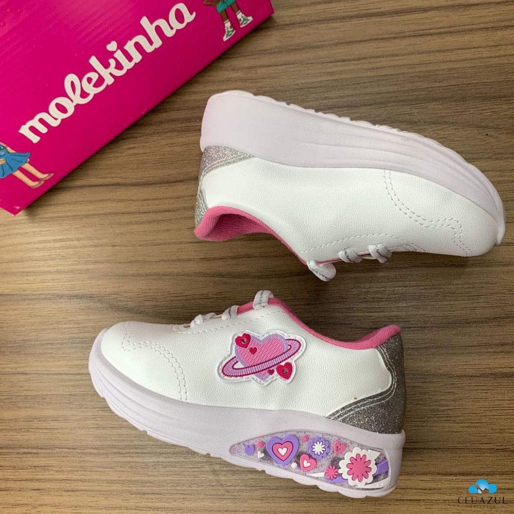 Tênis Infantil Molekinha Baby LED Detalhe Corações Conforto