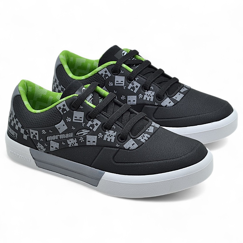 FORMA: Normal (ver tabela de medidas) CABEDAL: Material sintético de alta qualidade com estampas exclusivas inspiradas no universo Minecraft. DETALHES: Logos Mormaii aplicados, recortes diferenciados e pespontos reforçados que valorizam o design e aumentam a durabilidade. FECHAMENTO: Cadarços em elástico para calce fácil, prático e ajuste seguro. INTERIOR: Forro acolchoado e macio que reduz atritos e proporciona conforto prolongado. PALMILHA: Anatômica com tecnologia de amortecimento, oferecendo absorção de impacto e bem-estar. SALTO: Baixo, com altura mínima para estabilidade e liberdade de movimento. SOLADO: Emborrachado com textura antiderrapante, garantindo tração, segurança e resistência. ESTILO: Moderno e temático — ideal para o dia a dia e momentos de lazer com autenticidade. ENVIO: Na caixa original do fabricante. GARANTIA: 30 dias contra defeitos de fabricação. O Tênis Mormaii Infantil Masculino Minecraft é a opção perfeita para os pequenos que buscam estilo, conforto e praticidade em um só calçado. Inspirado no universo de Minecraft, ele traz um design moderno e cheio de personalidade, ideal para acompanhar o dia a dia com versatilidade. Confeccionado em material sintético de alta qualidade, o modelo garante resistência e durabilidade mesmo em usos intensos. Sua estrutura reforçada mantém o formato original por mais tempo, oferecendo maior sustentação durante as atividades. O cabedal apresenta acabamento detalhado com estampas temáticas exclusivas de Minecraft, além de logos da marca Mormaii estrategicamente aplicados. O mix de materiais e os recortes diferenciados trazem um visual dinâmico e urbano, valorizado pelos pespontos e acabamentos em alto padrão. O modelo conta com sistema de calce fácil, garantido pelos cadarços em elástico, que proporcionando um ajuste perfeito e praticidade, garantindo firmeza e conforto aos pés. Seu formato anatômico contribui para o encaixe confortável, acompanhando os movimentos naturais da criança. O interior é revestido com forro macio e acolchoado, que reduz atritos e aumenta o bem-estar ao longo do dia. A palmilha anatômica, com tecnologia de amortecimento, oferece absorção de impactos e suavidade ao caminhar, ideal para a rotina infantil. O modelo possui salto baixo, com altura mínima, pensado para assegurar estabilidade e praticidade em todas as ocasiões. O solado é emborrachado, com textura antiderrapante que proporciona excelente aderência em diferentes superfícies. Resistente e flexível, garante segurança e durabilidade ao calçado. TABELA DE MEDIDAS Tamanho 28 - 19,7cm Tamanho 29 - 20,4cm Tamanho 30 - 21cm Tamanho 31 - 21,6cm Tamanho 32 - 22,6cm Tamanho 33 - 23cm Tamanho 34 - 23,9cm Tamanho 35 - 24,4cm Tamanho 36 - 25cm