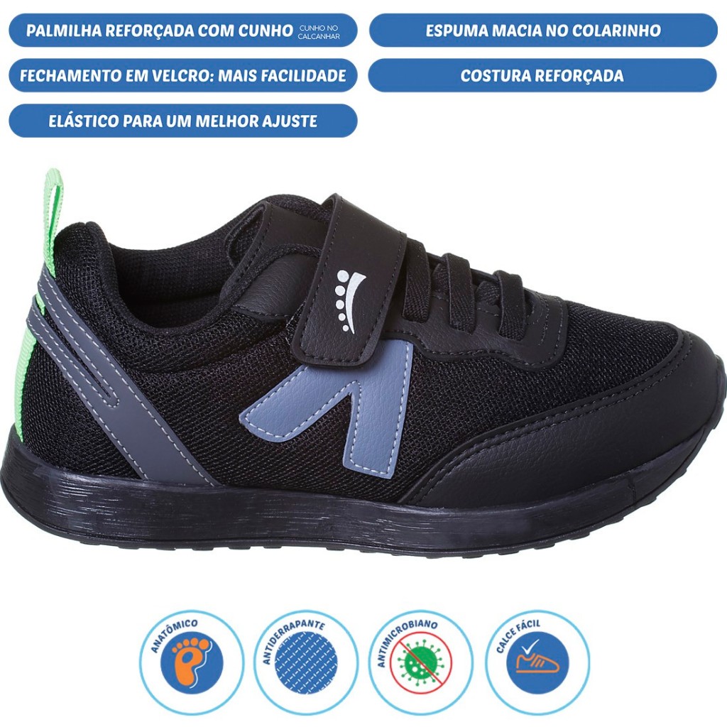 Tênis Infantil Ortopasso Jogging Menina Menino Estilo V Elástico Velcro