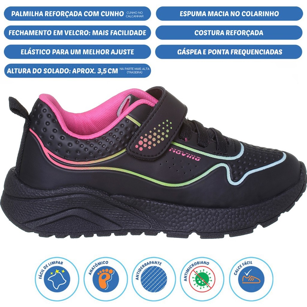 O tênis Jogging é perfeito para a rotina escolar! É confeccionado em materiais resistem, duradouros e que permitem uma limpeza rápida e fácil. Tem fechamento em tiras aderentes fácil, espuma fofinha no colarinho, solado antiderrapante e palmilha anatômica. Muito conforto, praticidade e segurança para a meninada aproveitar ao máximo a escola. **********TABELA DE MEDIDAS***********   28 ------------------ 19,20 cm 29 ------------------ 19,80 cm 30 ------------------ 20,30 cm 31 ------------------ 21,00 cm 32 ------------------ 21,90 cm 33 ------------------ 22,40 cm 34 ------------------ 23,50 cm 35 ------------------ 24,20 cm 36 ------------------ 24,90 cm OBS: À cada medida feita, adicione pelo menos meio centímetro para que o pé fique confortável no calçado. Afinal, nenhum sapato fica exatamente do mesmo tamanho dos pés.       DETALHES DO PRODUTO Fechamento: Tiras Aderentes e Elástico Material Externo: Sintético Material Interno: Têxtil Material da Palmilha: Têxtil Material da Sola: PVC Expandido  Cor: Preto Altura do cano: Baixo