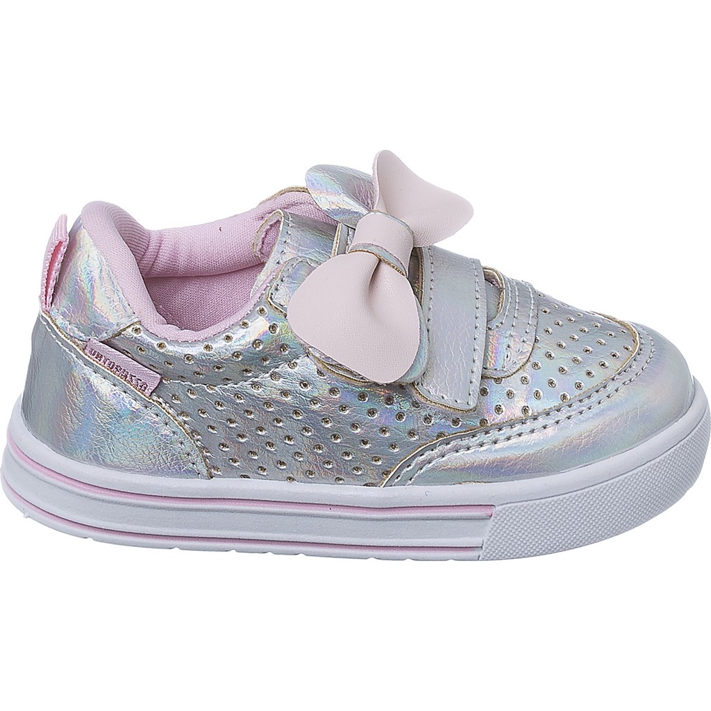 Tênis Infantil Ortopasso Menina Happy Prata Laço Feminino Criança Velcro Escola