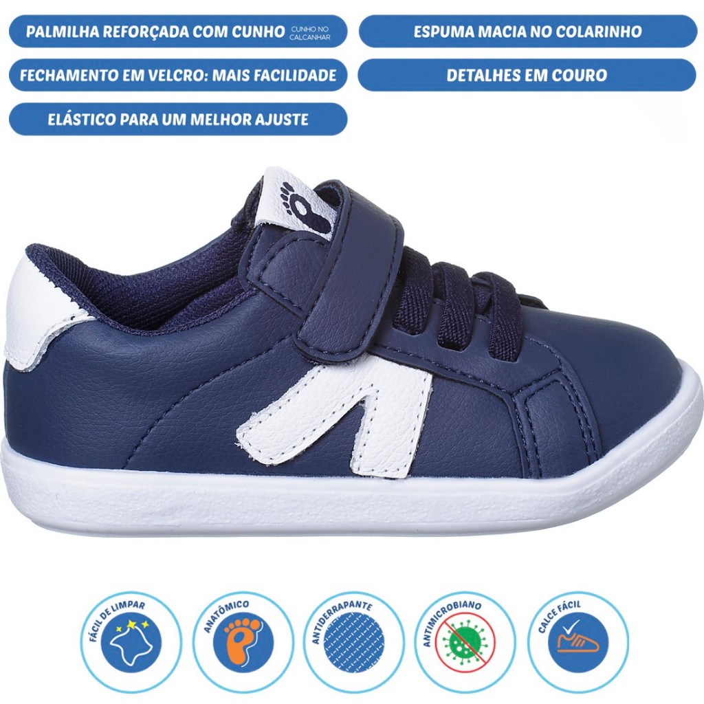 O Minions é arrojado e foi desenvolvido para proporcionar muito estilo e conforto aos pezinhos dos pequenos. Todo o charme dos tons fechados de inverno, aliados à toques de cor que dão vida ao modelo. É anatômico, confortável, fácil de calçar e possui o exclusivo solado Free Wave System que tem um desenho projetado para escoar a água, proporcionando mais aderência e segurança ao caminhar. **********TABELA DE MEDIDAS*********** 20 ------------------ 13,00 cm 21 ------------------ 13,90 cm 22 ------------------ 14,40 cm 23 ------------------ 15,10 cm 24 ------------------ 15,80 cm 25 ------------------ 16,60 cm 26 ------------------ 17,00 cm 27 ------------------ 17,70 cm OBS: Colocar o pé da criança no chão, medir, acrescentar pelo menos 1cm à essa medida e depois seguir a tabela. As medidas fornecidas são da palmilha. DETALHES DO PRODUTOFechamento: Tiras Aderentes e ElásticoMaterial Externo: SintéticoMaterial Interno: TêxtilMaterial da Palmilha: TêxtilMaterial da Sola: Borracha TRCor: Preto e Branco Altura do cano: Baixo