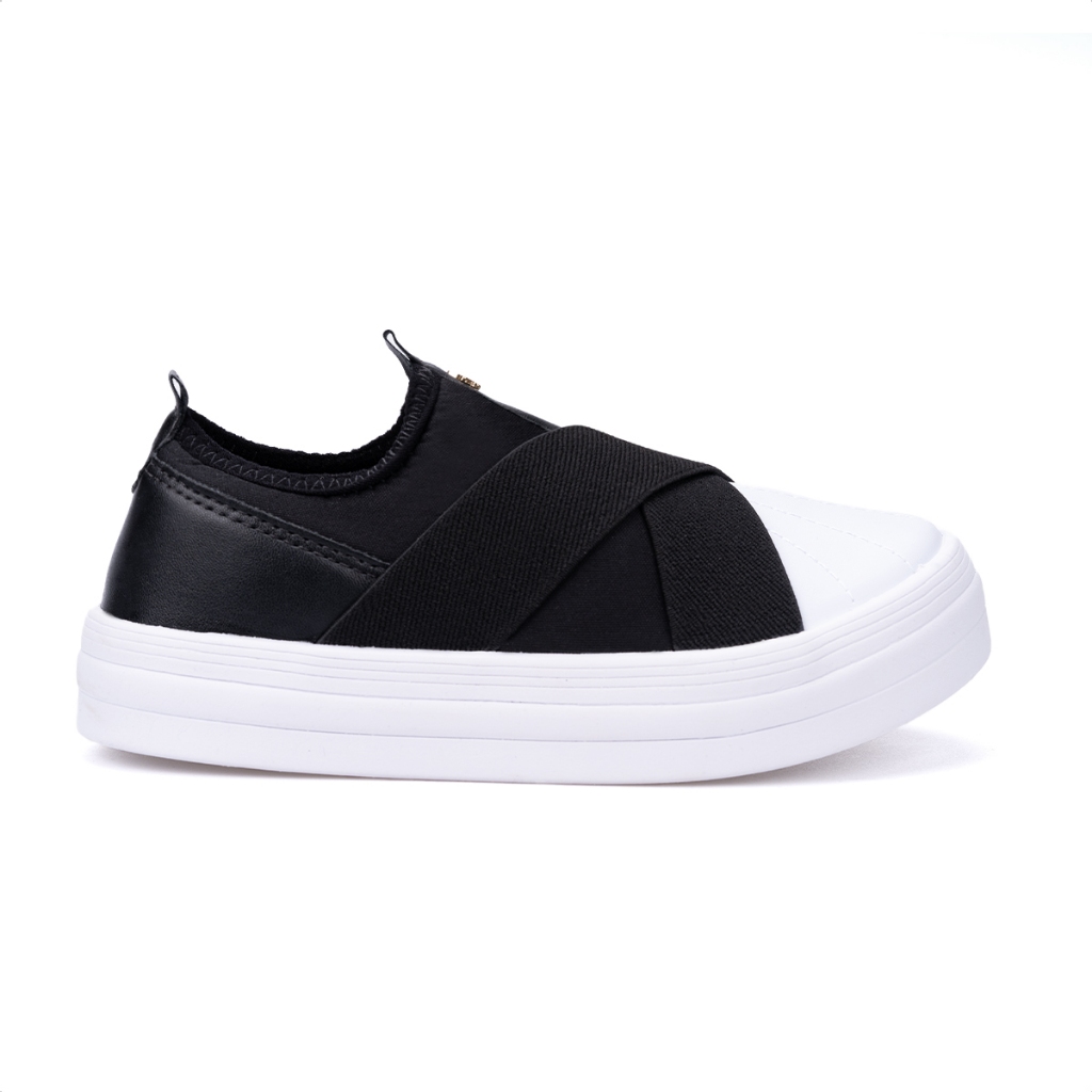 Tênis Infantil Slip On Menina Fashion Elástico Preto Rosa