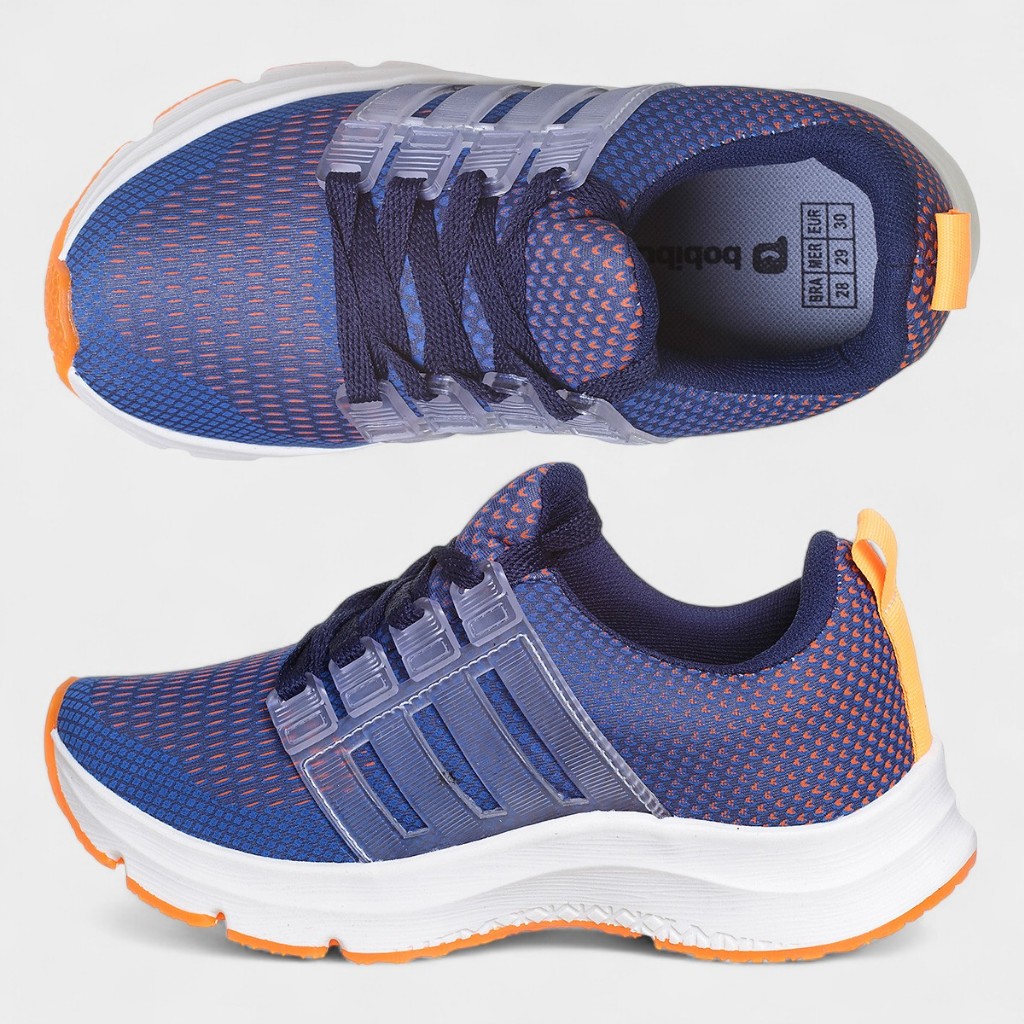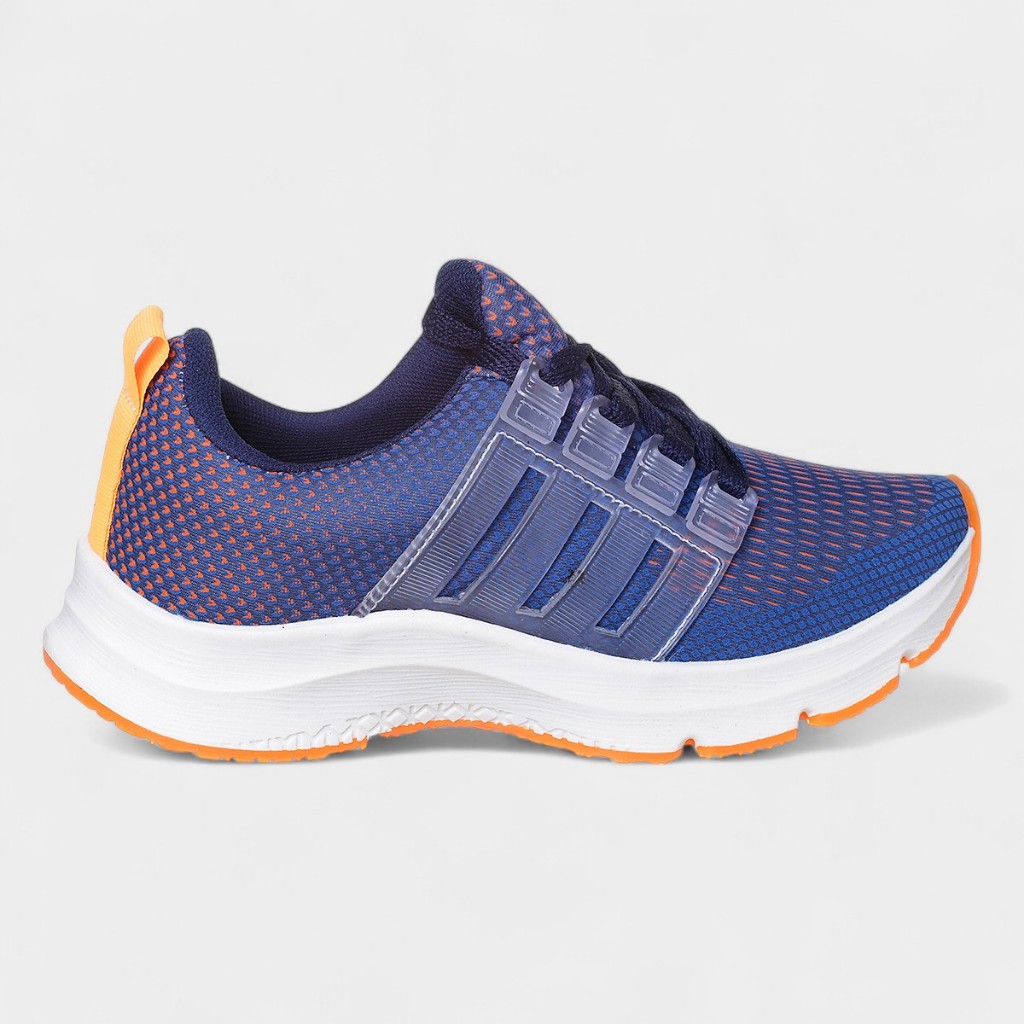 TABELA DE MEDIDAS N° 28 - 19,5 cm N° 29 - 20 cm N° 30 - 20,5 cm N° 31 - 21,3 cm N° 32 - 21,8 cm N° 33 - 22,3 cm Este tênis esportivo unissex combina conforto, estilo e praticidade. Com design moderno, ele traz cabedal em tecido mesh respirável na cor azul marinho, detalhes na cor laranja e material sintético para maior firmeza nos pés, além de um forro acolchoado em tom laranjaque garante um charme especial ao visual. A palmilha macia e a entressola com amortecimento proporcionam conforto durante todo o uso, enquanto o solado emborrachado com detalhes em laranja oferece aderência e segurança nas brincadeiras e atividades esportivas. Conta ainda com puxador traseiro para facilitar o calce. Disponível nas numerações do 28 ao 33, é a escolha perfeita para unir estilo e desempenho nas rotinas das meninas!