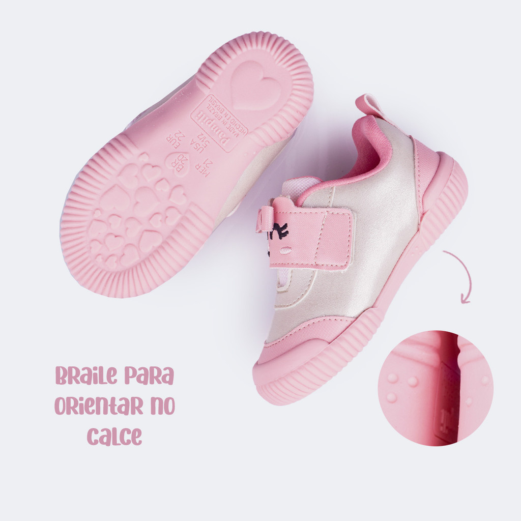 Fofura e Conforto em Cada Passinho!Perfeito para encantar as pequenas, esse tênis traz um design lúdico e cheio de delicadeza. O grande destaque fica por conta do bordado de ursinha, acompanhado de orelhinhas em relevo e um laço fixo, que adicionam um toque especial e divertido ao modelo. O fechamento único em fecho de contato frontal, proporciona mais autonomia para as pequenas, tornando o calce prático e seguro. Feito em material sintético de fácil limpeza, esse tênis é ideal para o dia a dia, garantindo durabilidade e praticidade para acompanhar todas as aventuras. O solado texturizado antiderrapante oferece mais segurança e aderência, permitindo que as meninas caminhem com firmeza e estabilidade.