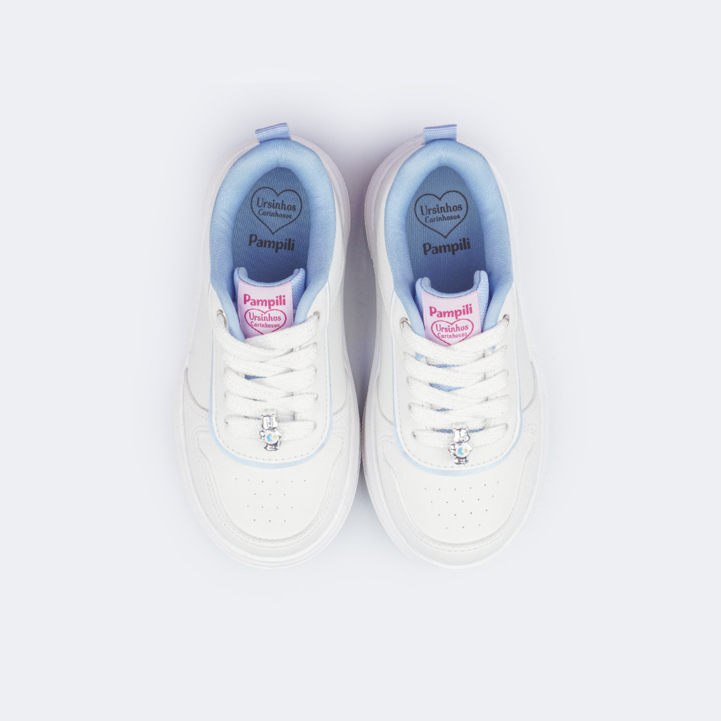 A coleção oficial Pampili + Ursinhos Carinhosos traz de volta personagens que marcaram a infância de muitas gerações em uma linha exclusiva de calçados e acessórios que conectam pais e filhas em histórias repletas de amor, amizade e ternura. Com cores alegres, símbolos nostálgicos e detalhes vibrantes, une conforto, diversão e estilo. Uma linha única para compartilhar memórias e criar novos momentos cheios de afeto.Delicada e sonhadora, a Ursinha Meus Sonhos, aparece em destaque neste tênis, trazendo ainda mais magia para o visual das meninas. Seu design em branco com detalhes em azul claro traz leveza ao visual, enquanto o pingente da personagem em metal inoxidável nos cadarços adiciona um charme único e reforça toda a magia da coleção. O solado micro sustentável, leve e com 20% de materiais reutilizáveis, junto da palmilha anatômica e do forro macio que absorve o suor, garante conforto em todos os momentos. O detalhe em braile no solado mostra a atenção aos detalhes inclusivos que fazem a diferença. Um tênis versátil e cheio de magia para acompanhar cada momento da menina com conforto e estilo. Aposte! Combine com vestidos leves para looks delicados ou com conjuntos confortáveis para acompanhar o dia a dia.
