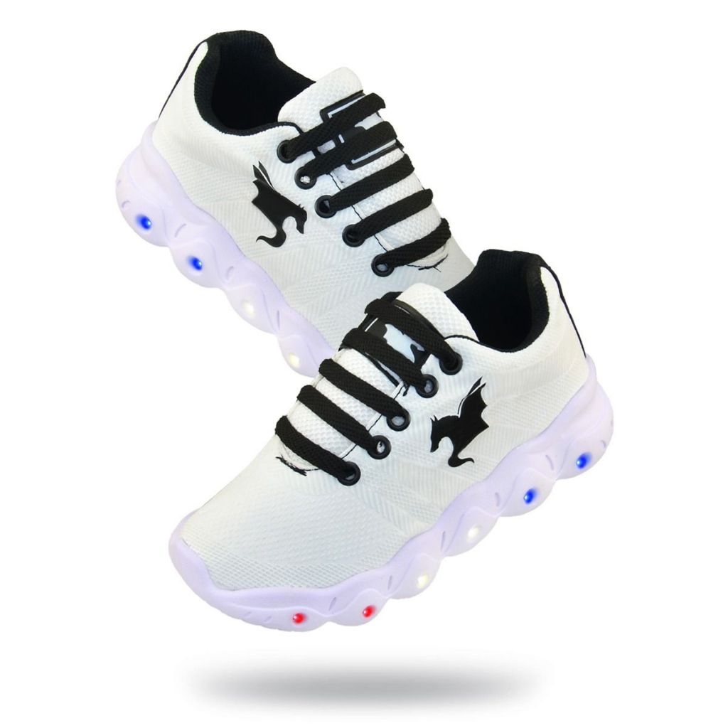 Tênis Led Infantil Casual Meninos Branco Preto